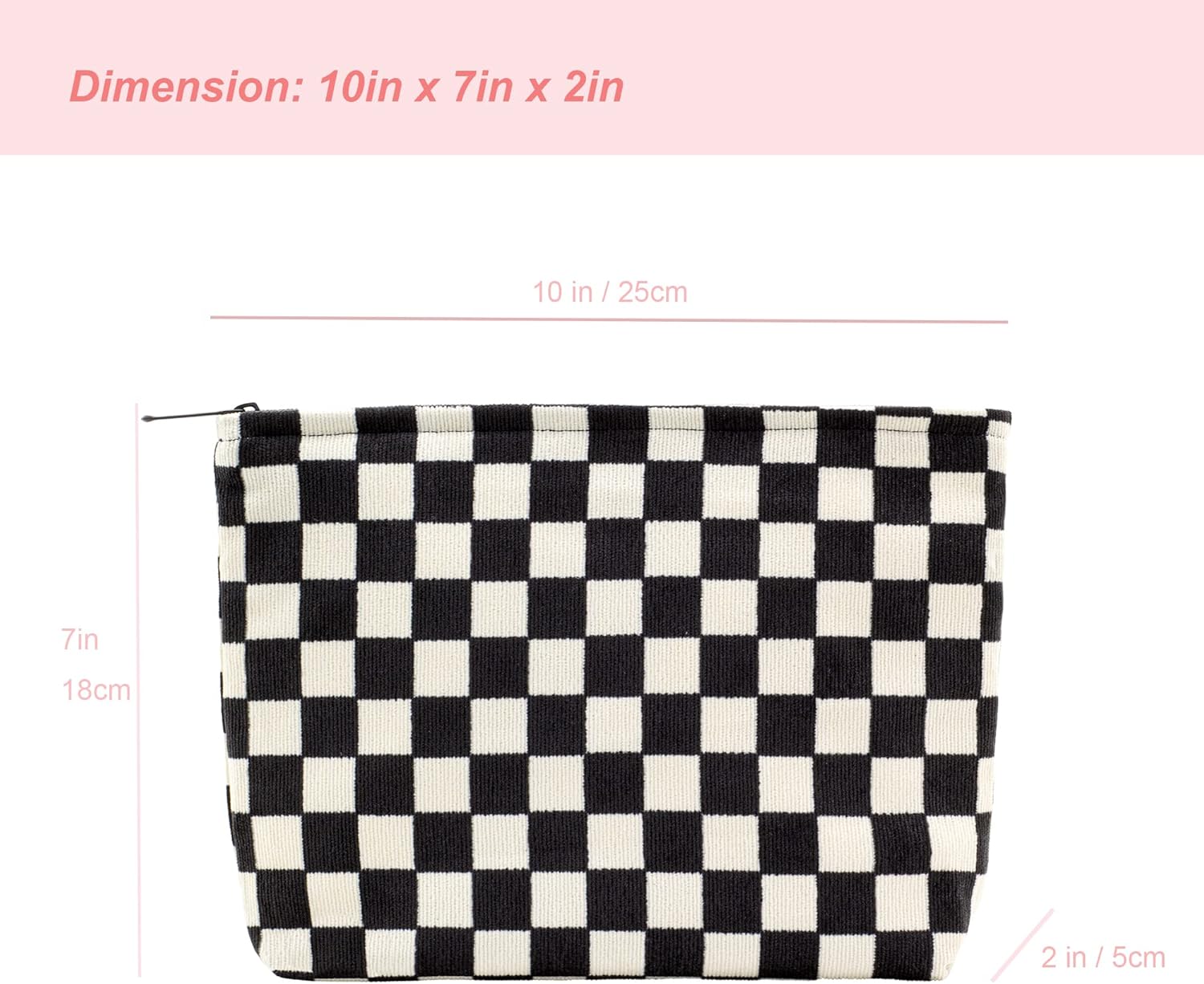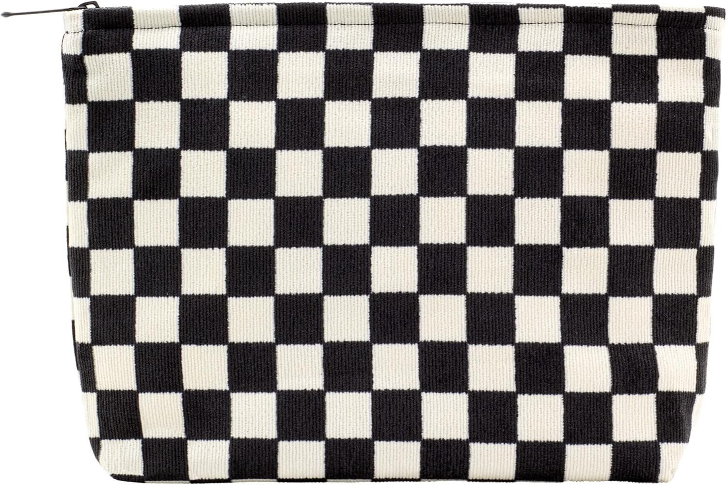 PAZIMIIK Makeup Bag Large Zipper Corduroy Make Up Pouch for Purse Travel Canvas Cosmetic Organizer for Women Brush Storage,Checkered Black