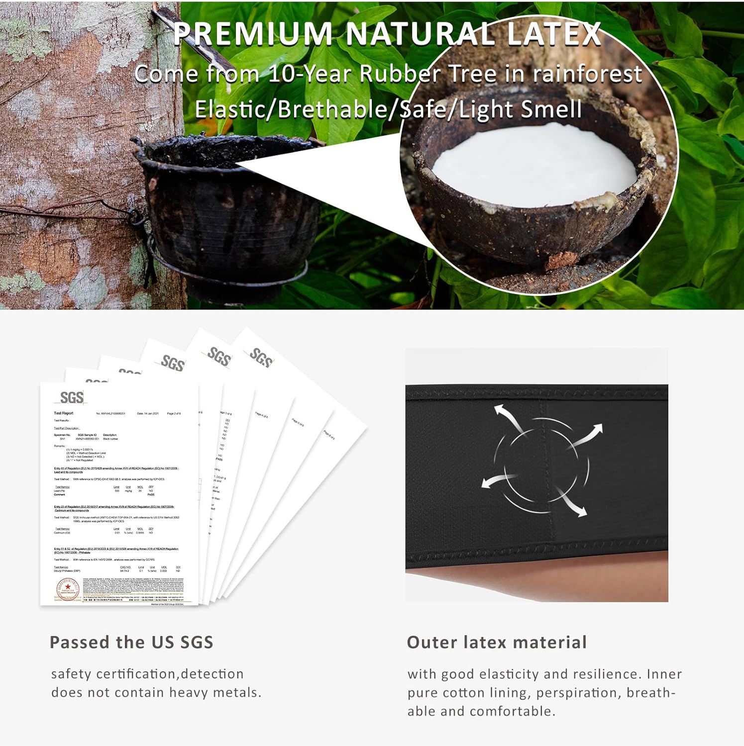 - Fabric type : Inner layer 96% Cotton+4% Spandex; Out layer natural latex