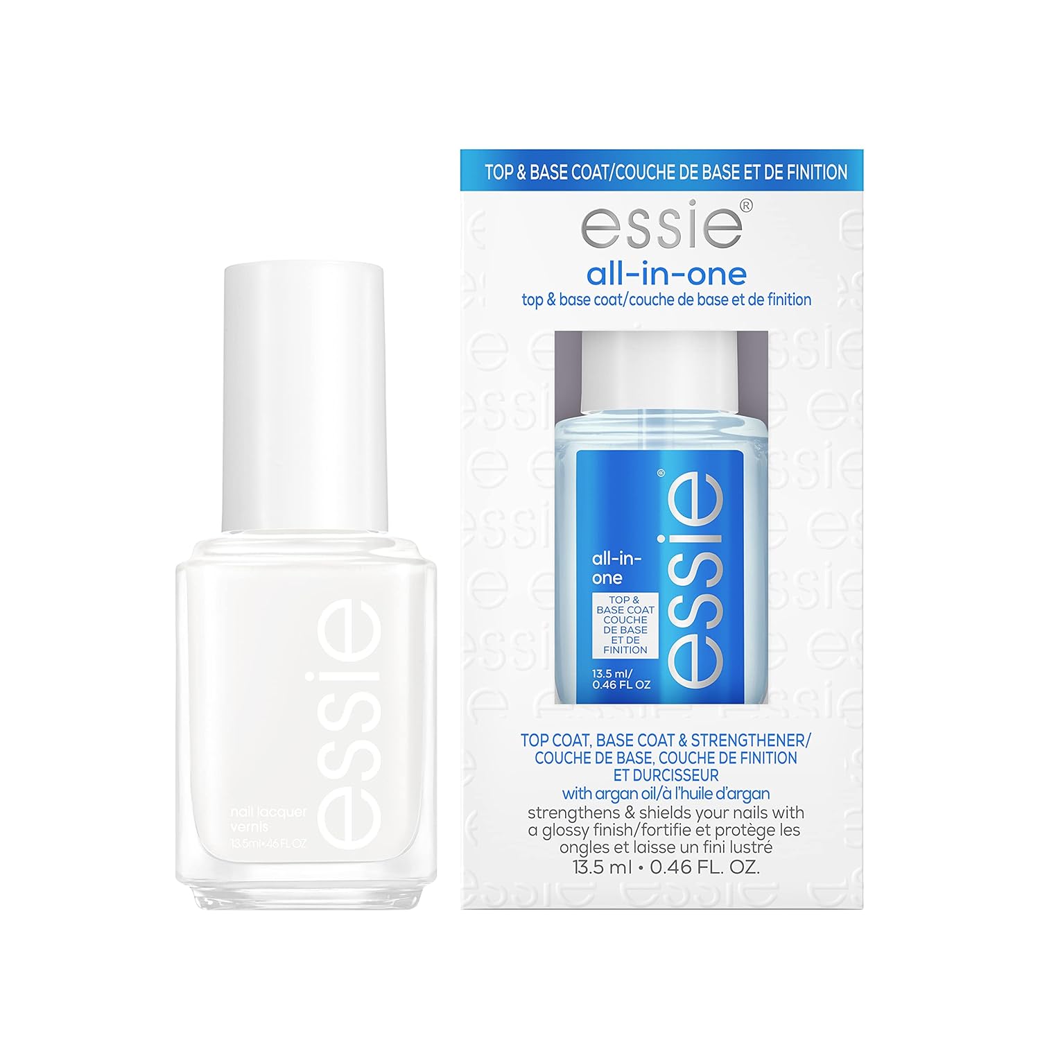 Essie Nail Polish White Mani Kit, Blanc, White Nail Polish + All-In-One Base Coat + Top Coat + Strengthener, Gifts For Women And Men, 0.46 Fl Oz Each