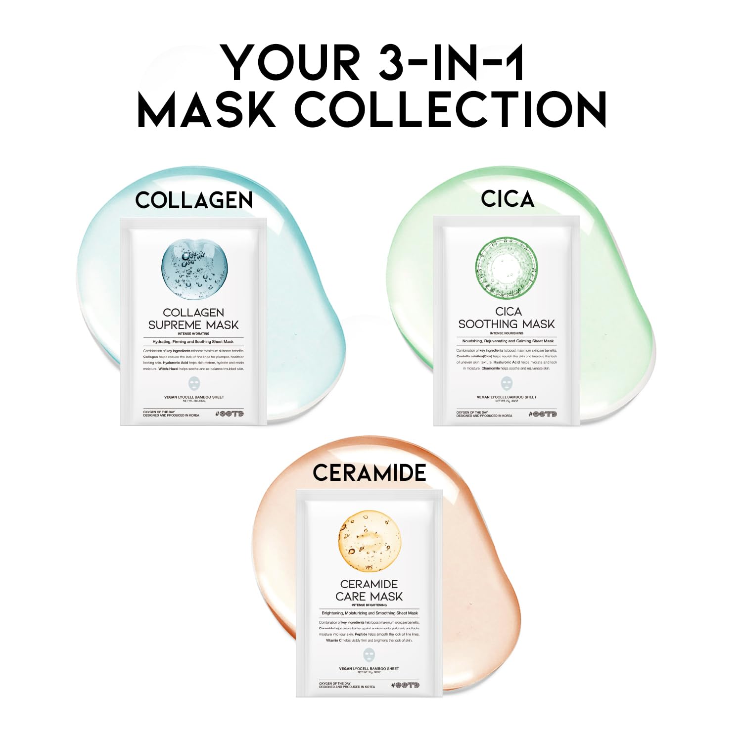 - CLINICALLY PROVEN TO WORK - All #OOTD products are clinically tested to prove its efficacy. COLLAGEN SUPREME MASK confirmed to hydrate, increase skin elasticity and optimize pH value of the skin. CERAMIDE CARE MASK to hydrate, increase skin elasticity, brighten the skin and optimize its pH value. CICA SOOTHING MASK confirmed to hydrate and increase skin elasticity.