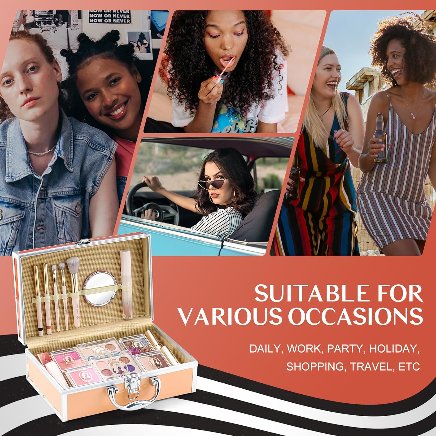 - Red Train Case Makeup Kit: Retro style, Makeup color is gorgeous fit for party,date and celebration activities.