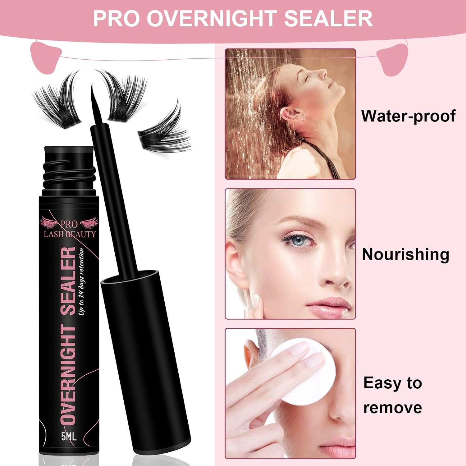 - Super strong hold: PRO Overnight Sealer is water-proof and oil-proof, so you don't have to worry about showering, and it can make your false eyelashes super long lasting for more than 14 days.