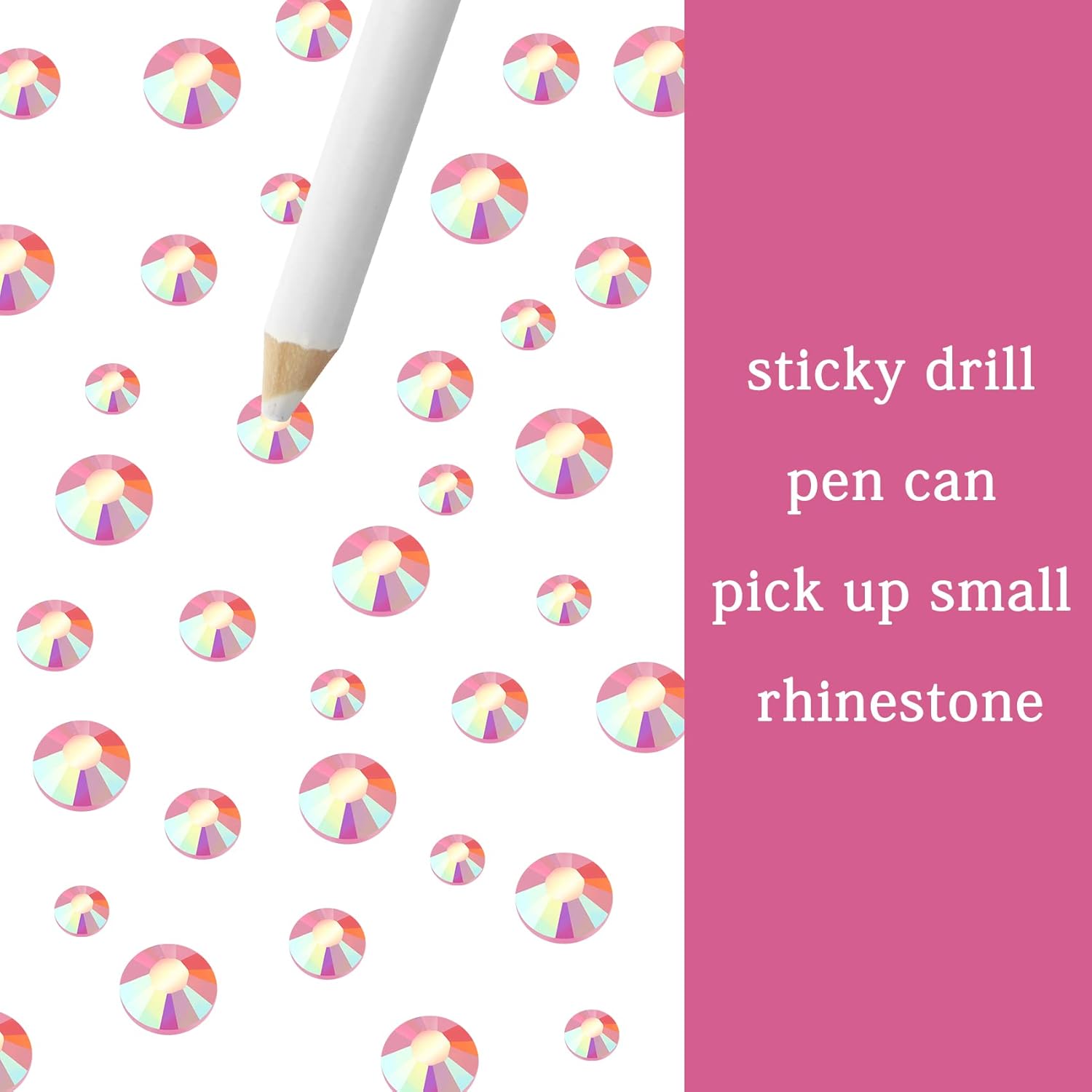 - 3 Sizes Rhinestones Set with Pick Up Pen: 2050 pcs per box. Round flat backs &Non Hotfix, SS10 (3mm) 1100PCS, SS16 (4mm) 600PCS / SS20(5mm) 350PCS.