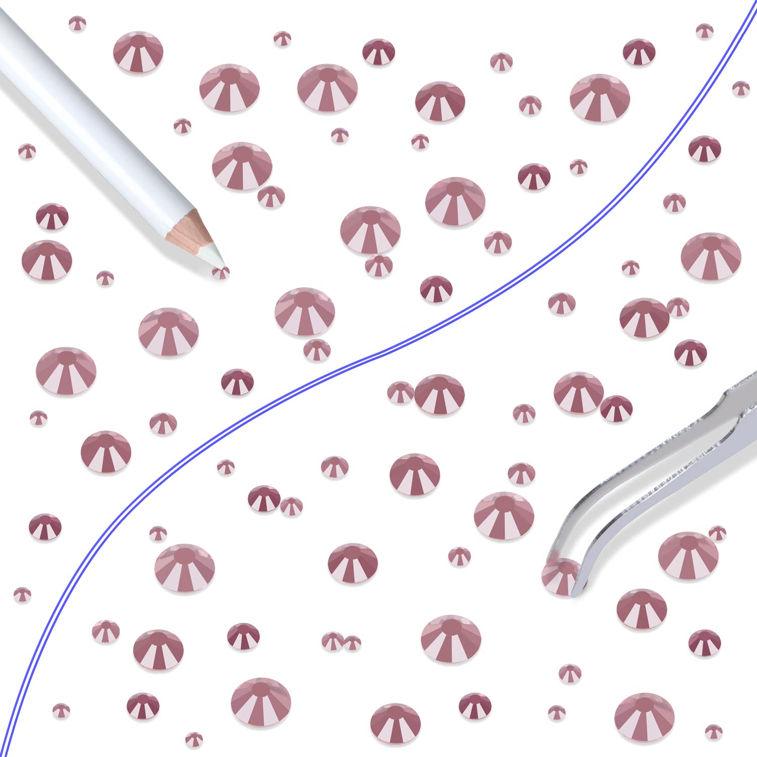 - Approx 6000 pcs of good quality sparkly flatback glass rhinestones with tweezers and 2 picker wax pencils help you easily pick up and set rhinestones in all your jewelry.