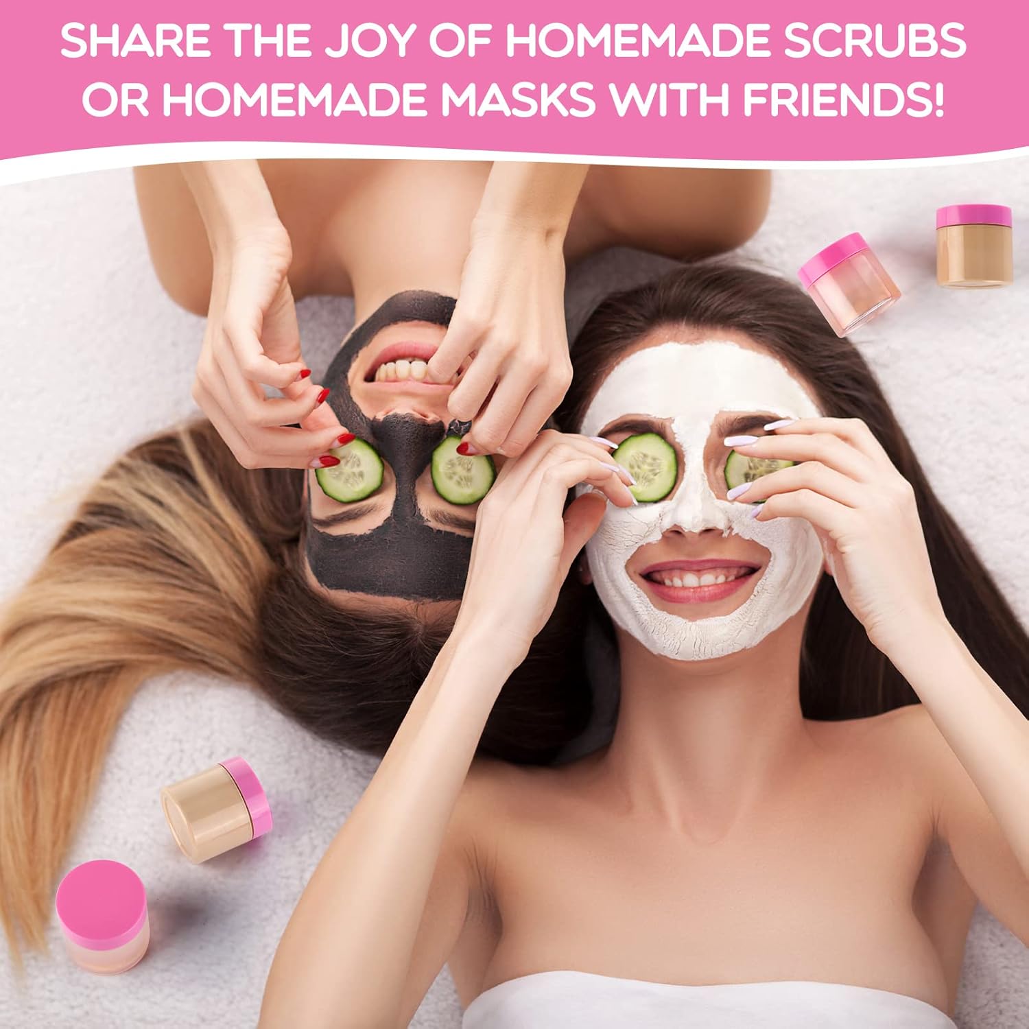 Patelai 4 Pieces Round Wide-mouth Leak Proof Plastic Container Jars with Lids for Travel Storage Makeup Beauty Products Face Creams Oils Salves Ointments DIY Making(2 Ounce,Pink)