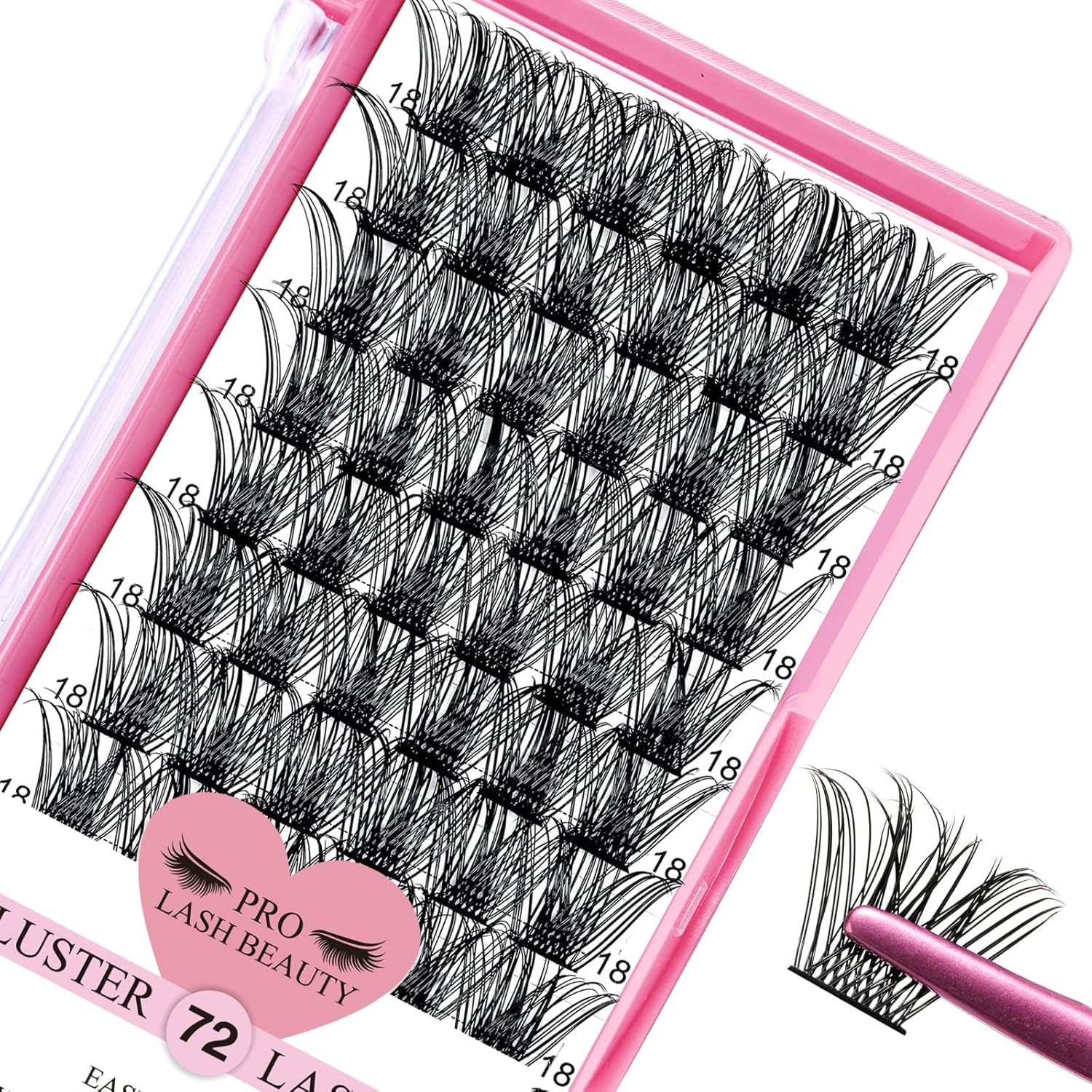 - 72 Pcs Cluster Lashes: The Cluster lashes are avaiable now! Different from other brands, PRO LashBeauty can provide 72 pcs in one tray! Mix Length from 8mm to 16mm. You can get more lashes and use more times.