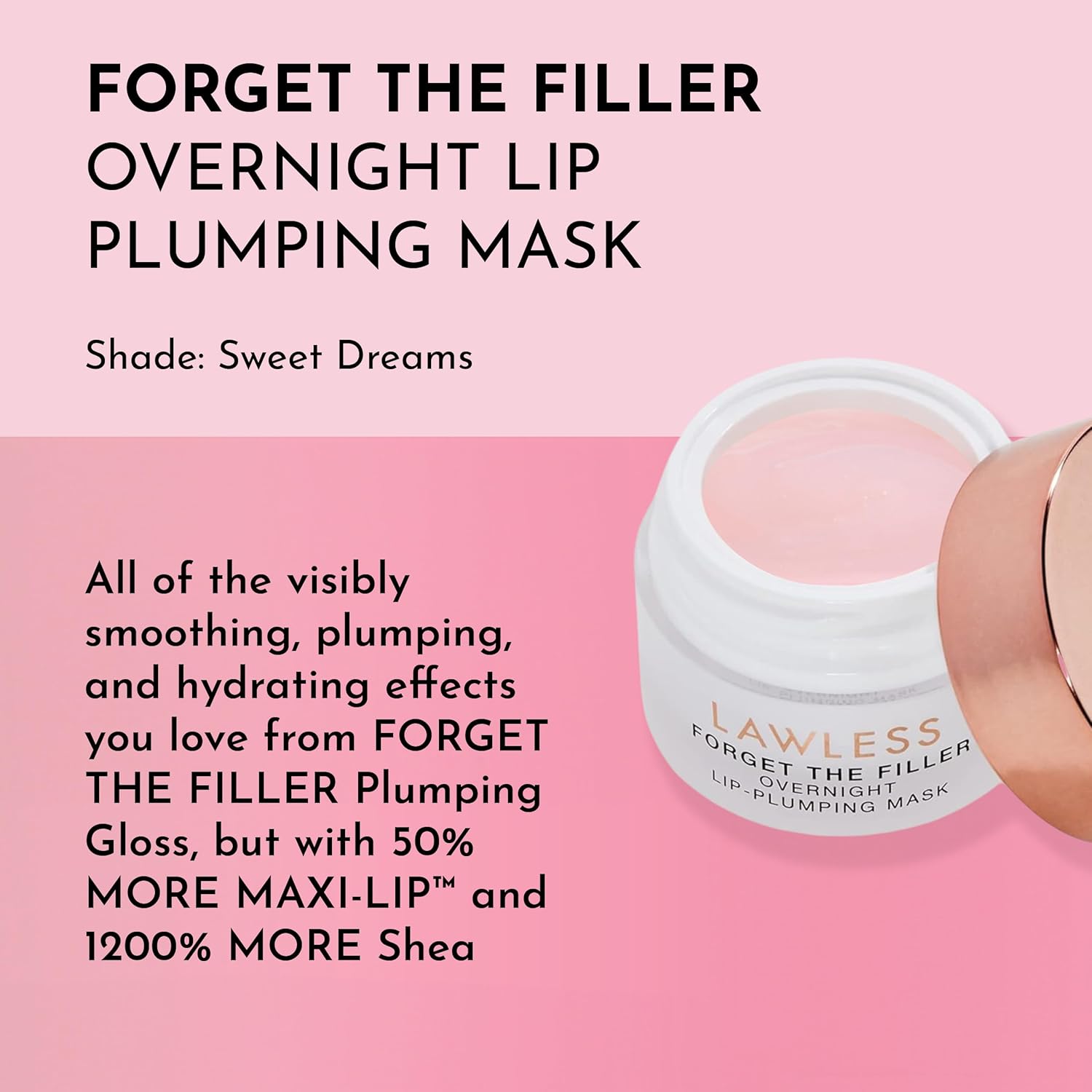 LAWLESS Forget the Filler Lip Mask - Sweet Dreams - Premium Overnight Lip Plumping Treatment with Natural Ingredients Designed to Plump, Hydrate, and Smooth Lips - 0.28 oz