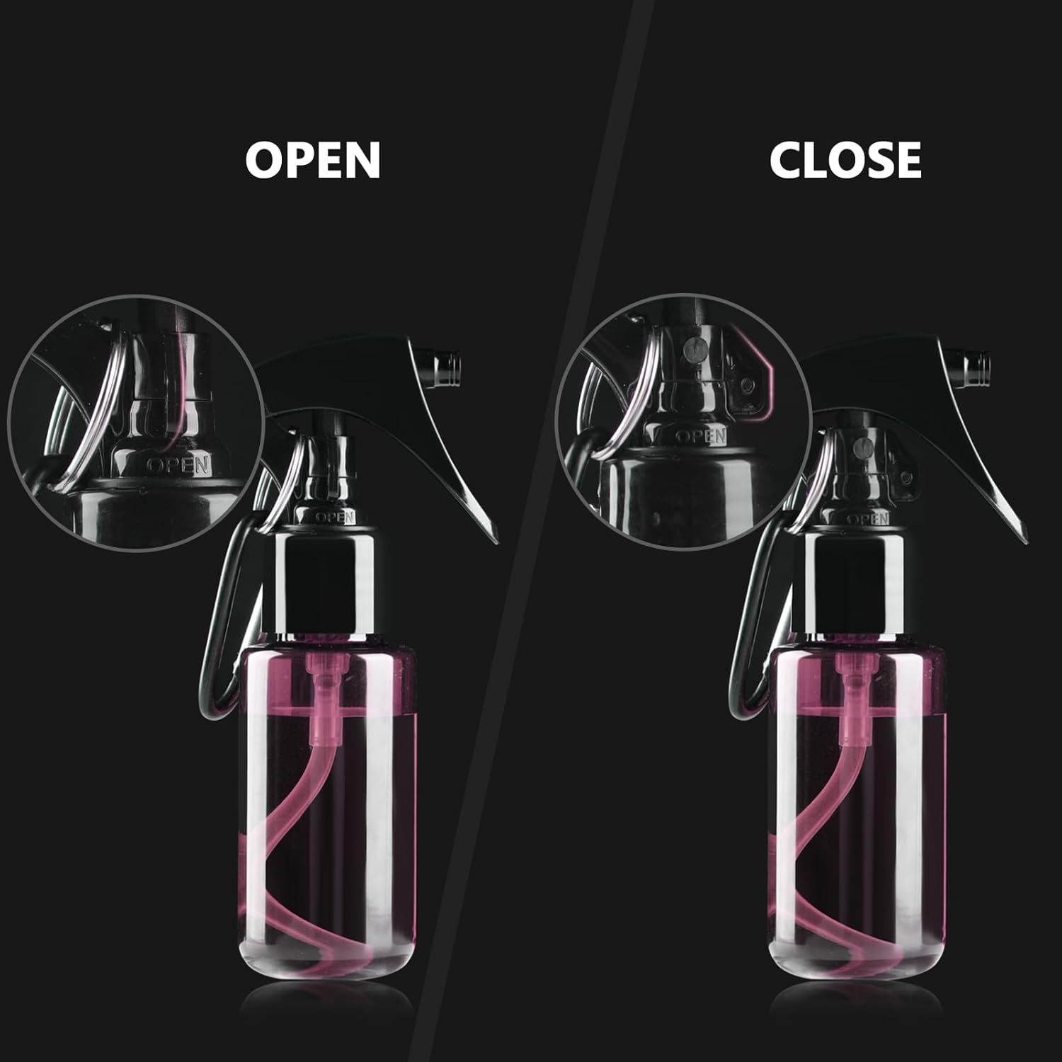 - Portable Design and Multiple Use:50ml spray bottle is designed with clips,can be used for moisturizing water,alcohol, perfume,cleaner,indoor plant watering,ironing and cleaning solution, perfect for travel,outdoor activities,and alcohol disinfection