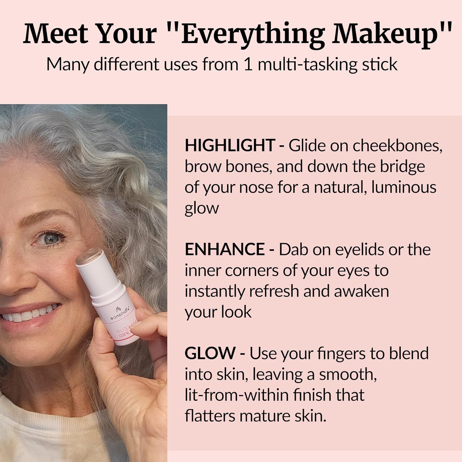 - Scientifically backed beauty - We merge science and beauty. Our highlighter stick is not just a cosmetic for older women; it's a skincare product that reflects our dedication to premium, scientifically backed products for older women.