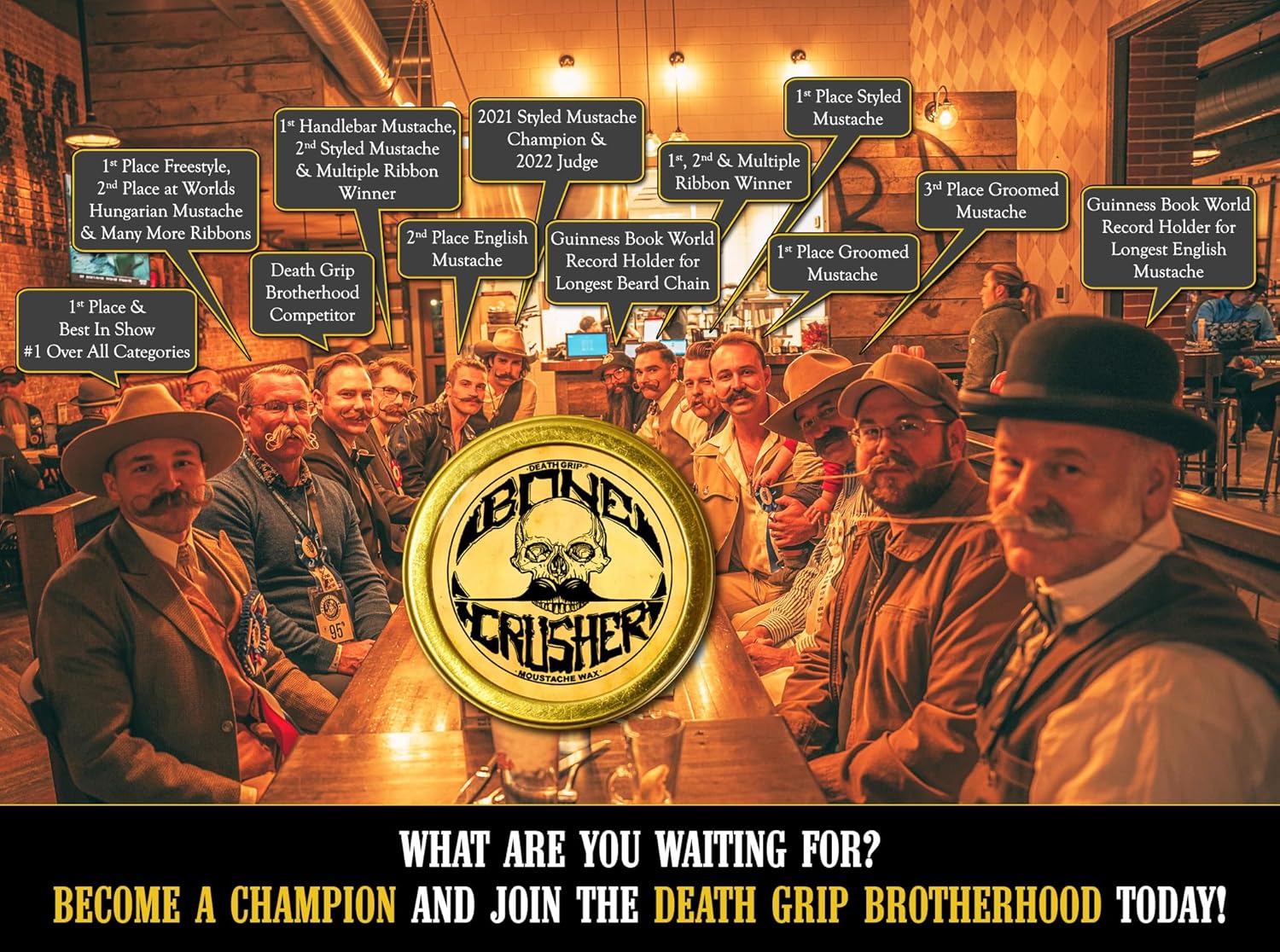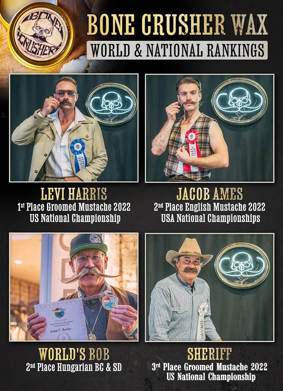 - Extra Strong Hold Bone Crusher - Achieving a variety of mustache styles, including Handlebar, English, Chevron, Dali, Walrus, Curly, and more.