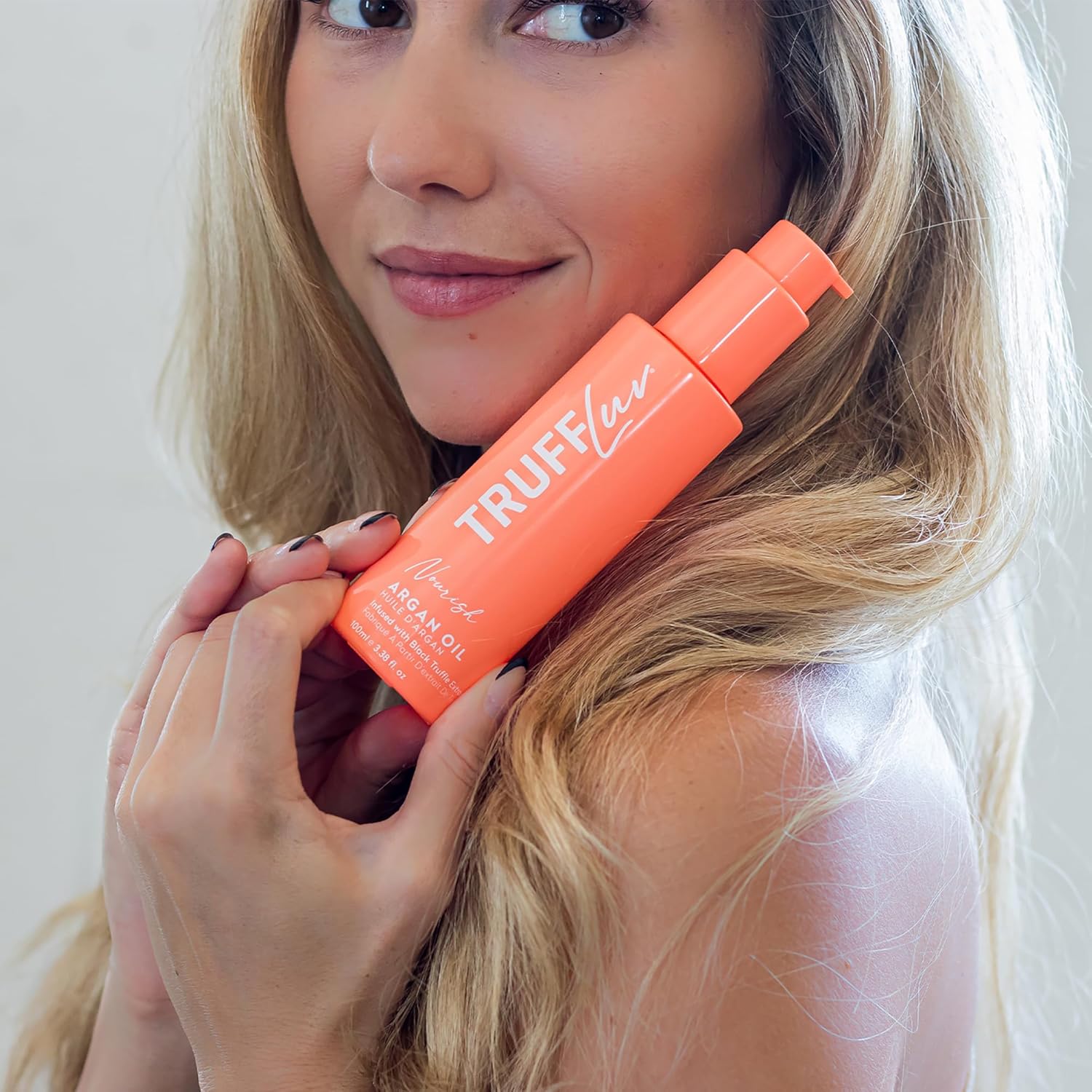 - ARGAN OIL: Quickly absorbs, leaving no oily or greasy residue. Split ends are repaired, leaving hair shiny and more manageable. The uniqueness of black truffle combined with Argan Oil; conditions, smooths frizz & boosts shine at unprecedented levels.