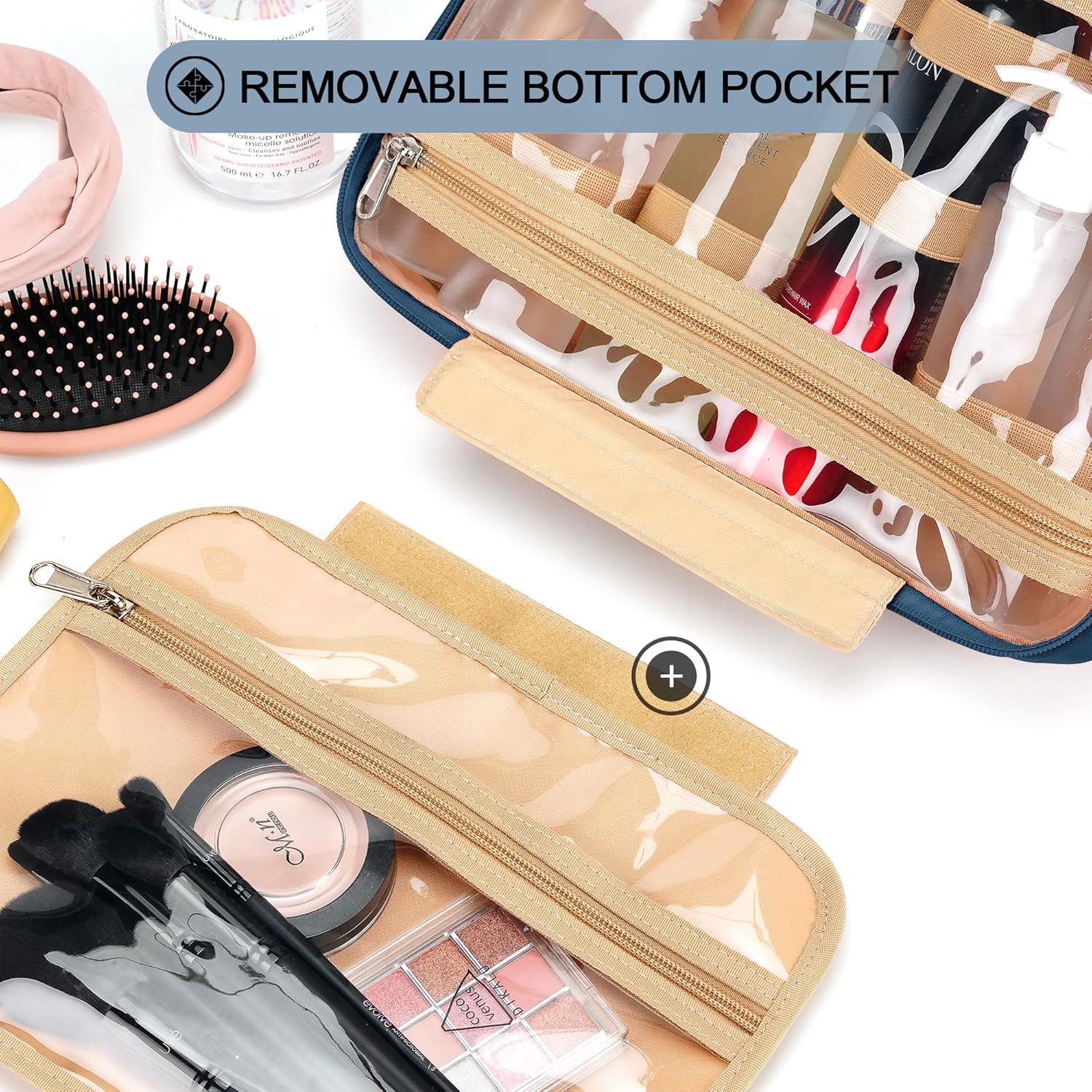 Travel Hanging Toiletry Bag for Women, Extra Large Makeup Bag, Holds Full-Size Shampoo, with Jewelry Organizer Compartment, Waterproof Cosmetic Bag, Toiletries Kit Set with Trolley Belt, Navy Blue