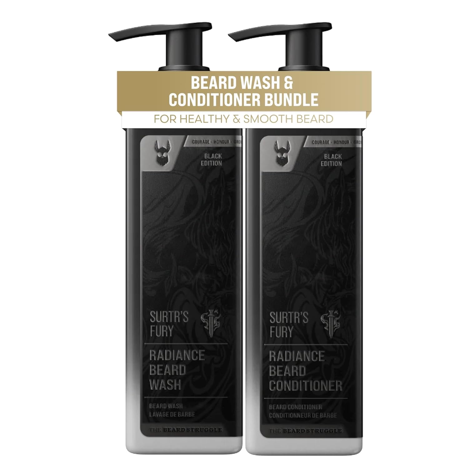 The Beard Struggle - Radiance Beard Wash & Conditioner Bundle for Men - Platinum Collection - Pack of 2, Surtr's Fury - Nourish, Cleanse, Softens, & Strengthens Beard