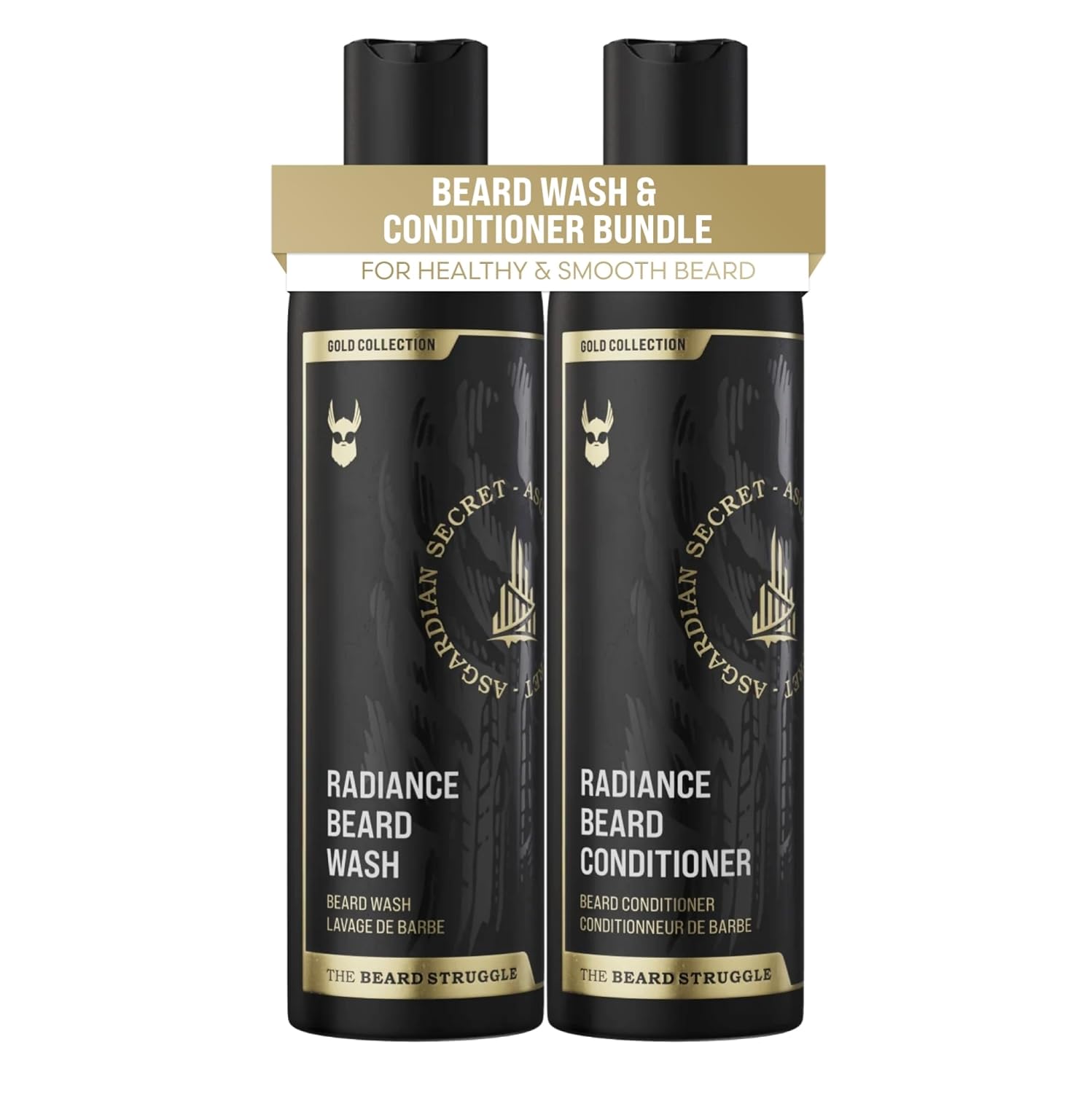 The Beard Struggle - Radiance Beard Wash & Conditioner Bundle - Gold Collection - Pack of 2, Asgardian Secret - Nourish, Cleanse, Softens, & Strengthens Beard - Beard Wash and Conditioner for Men