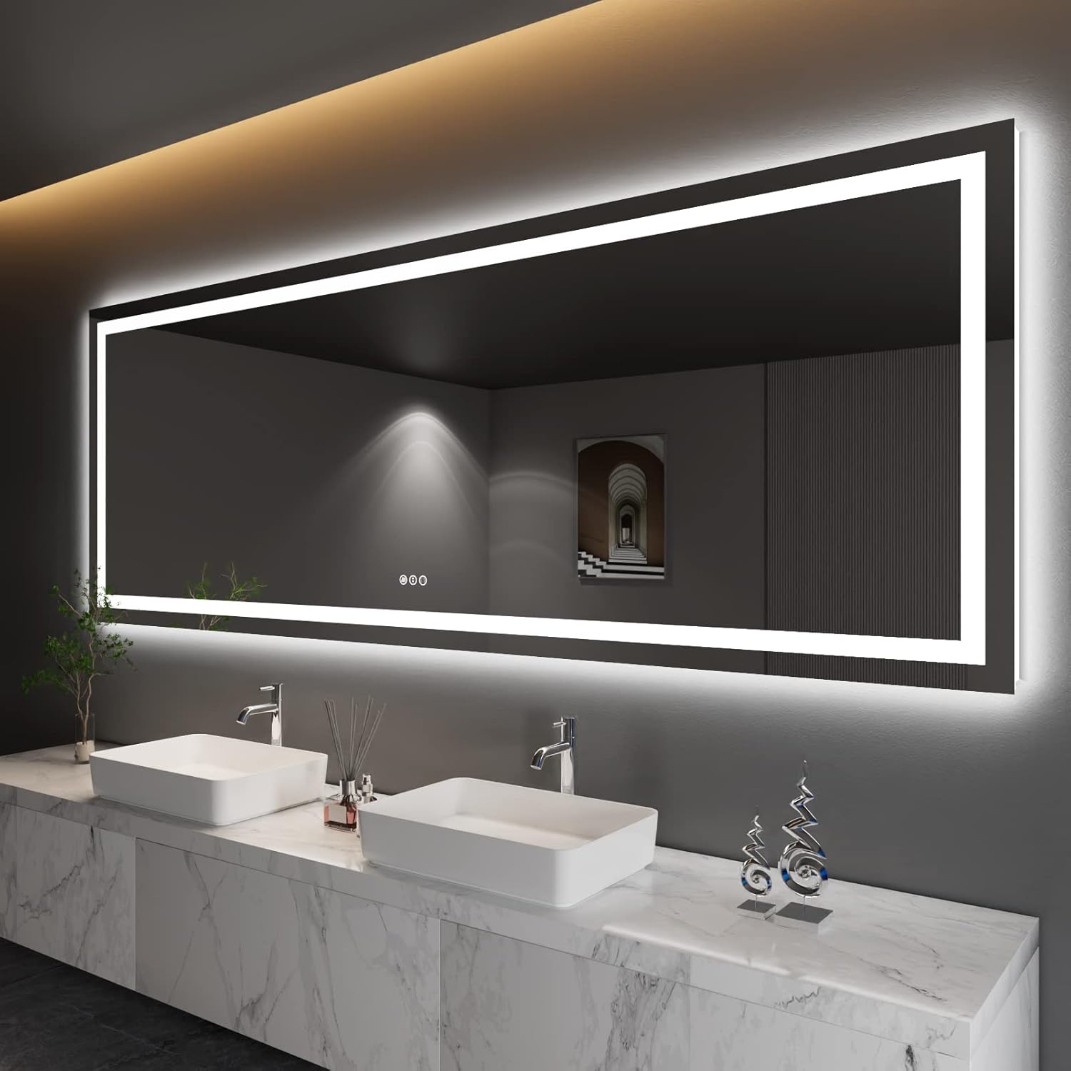 - [Double Lights & Super Bright]: With two built-in LED strip lights, Amorho LED bathroom mirror with front light and backlit both; The lighting is bright enough for makeup or shave or beauty care in your space