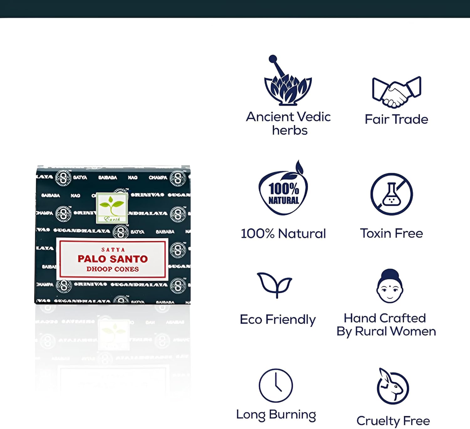 Satya Sai Baba Palo Santo Original Earth Marked Natural Masala Incense 144 Dhoop Cones in Pack of 12 Boxes | Best for Prayer, Meditation and Relaxation
