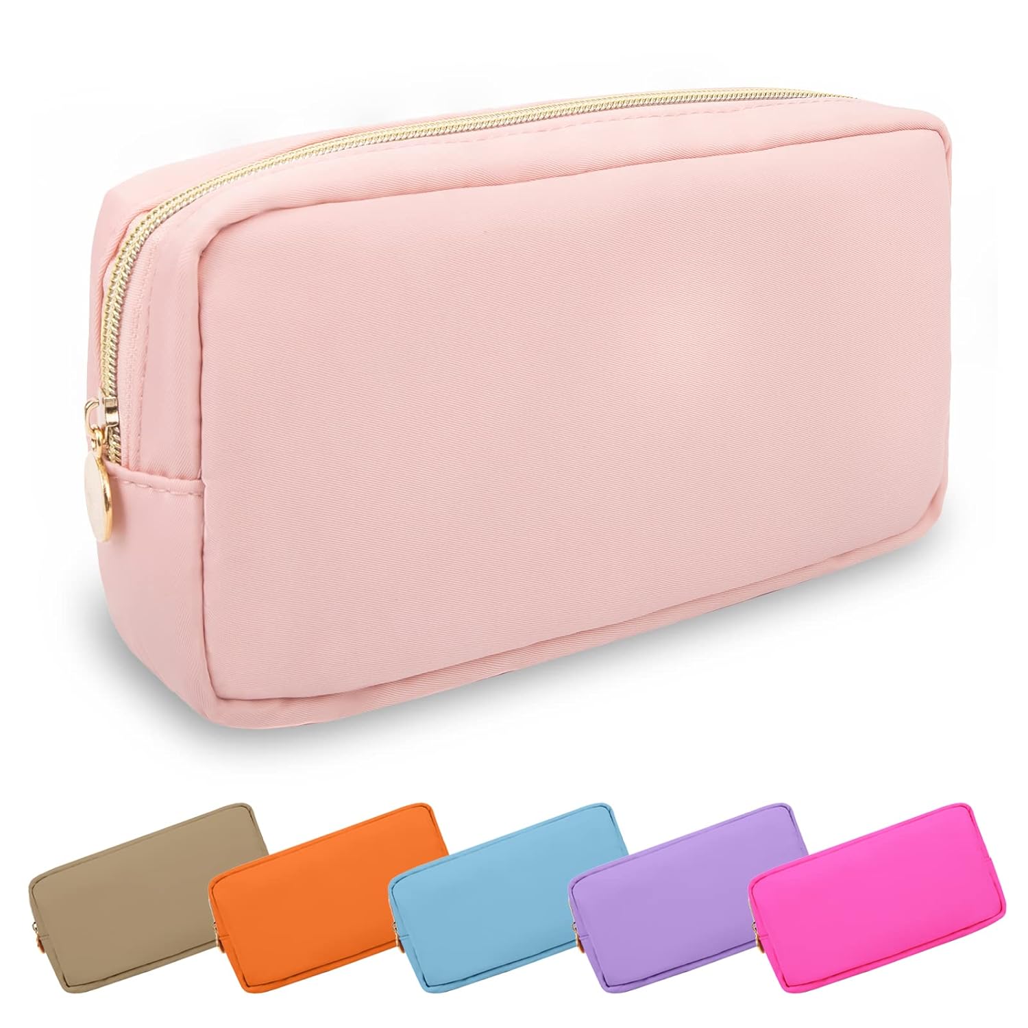 - 【Multiple Options】The cute makeup bag has four sizes, Mini(4.75''*2''*5''), Small(9.5''*2''*5''), Large(11''*5''*8'') and Slim(2.75*8''*2.75''). You can choose the right size according to the items you want to store. We have nine colors, Bubblegum, Sand, Chocolate, Periwinkle, Cotton Candy, Peach, Flamingo, Grape and Khaki. You can enjoy choosing the color you like.