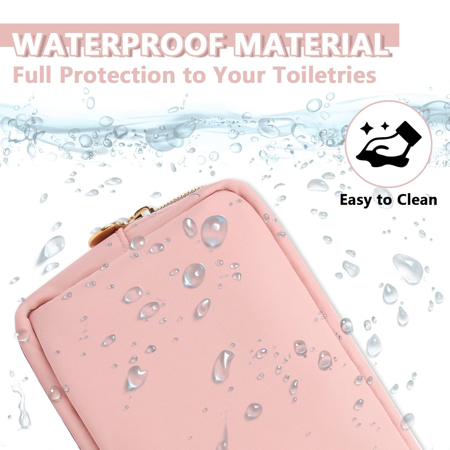 - 【High Quality Material】The cosmetic bag is constructed of lightweight and durable nylon fabric. It is waterproof and easy to clean, helping to protect your beauty, cosmetics and toiletries from water spillage accidents.It will not lose color after the wash.
