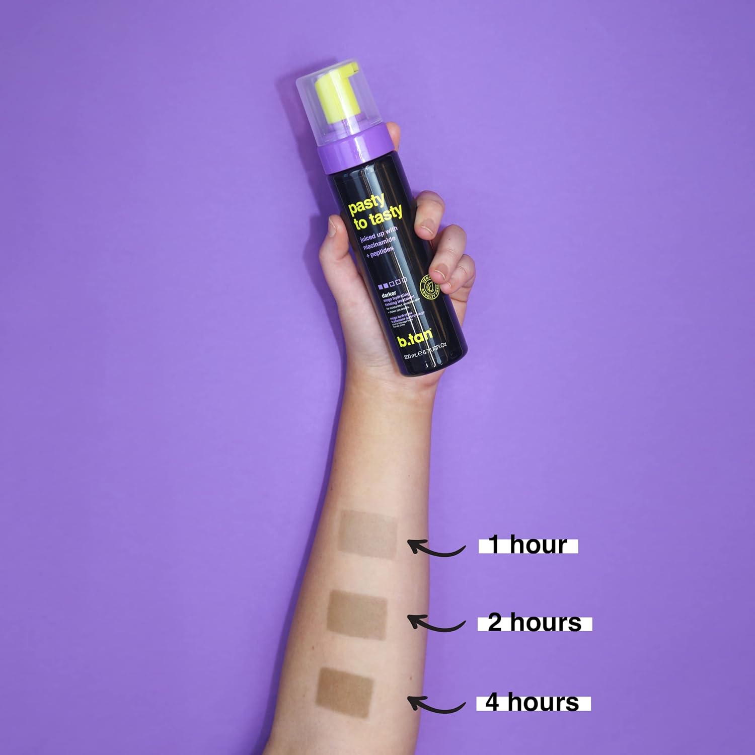 b.tan Dark Self Tanner Mousse | Pasty to Tasty -Best, 1 Hour Express, Hydrating Sunless Tanning Foam, Bronzed Glowy Skin, Face & Body, No Fake Tan Smell, 6.7 Fl Oz