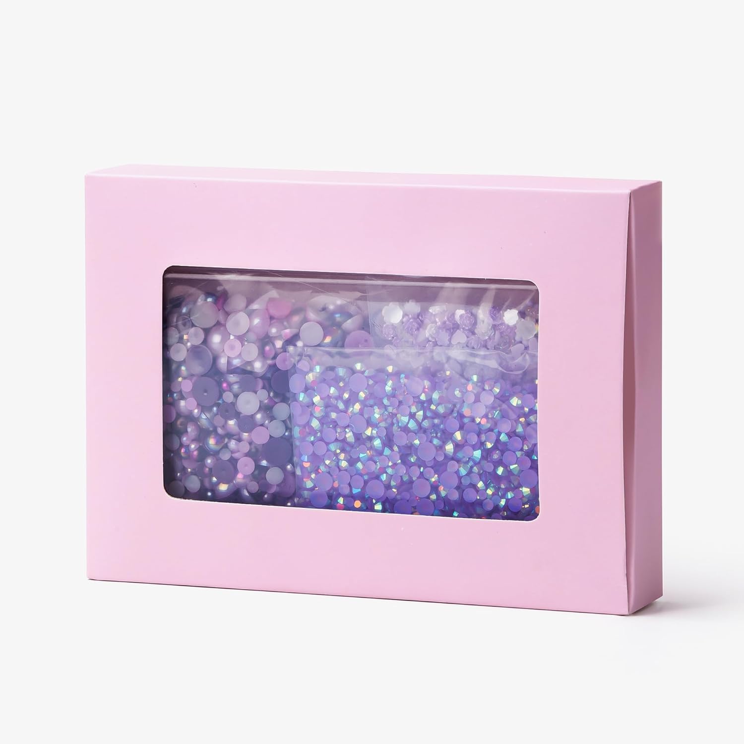 160g Purple Flat Back Pearls Rhinestones for Crafts Mixed Size 3mm-10mm AB Color Round Half Pearls Flatback Pearl Beads and Resin Rhinestones Set for Face Art