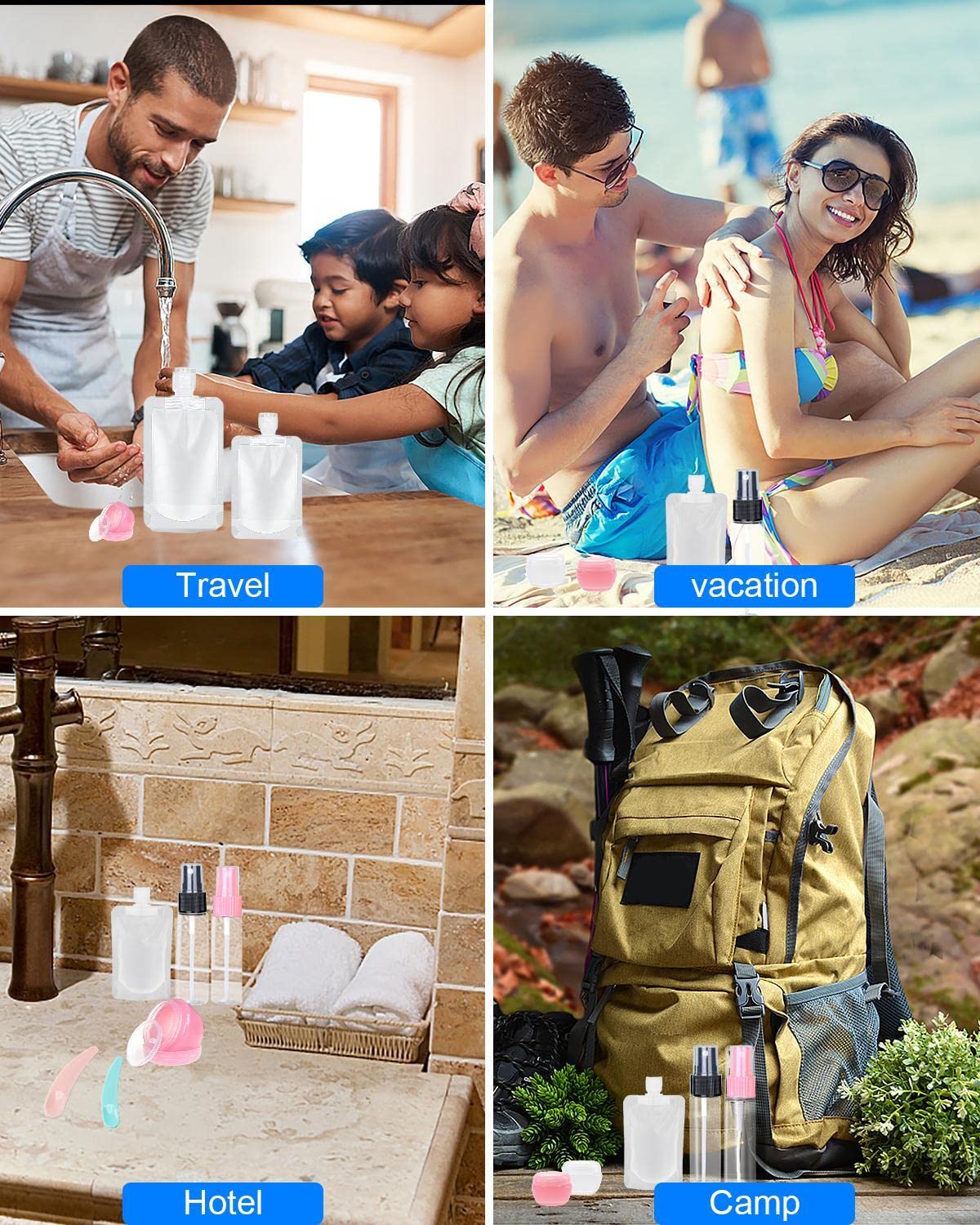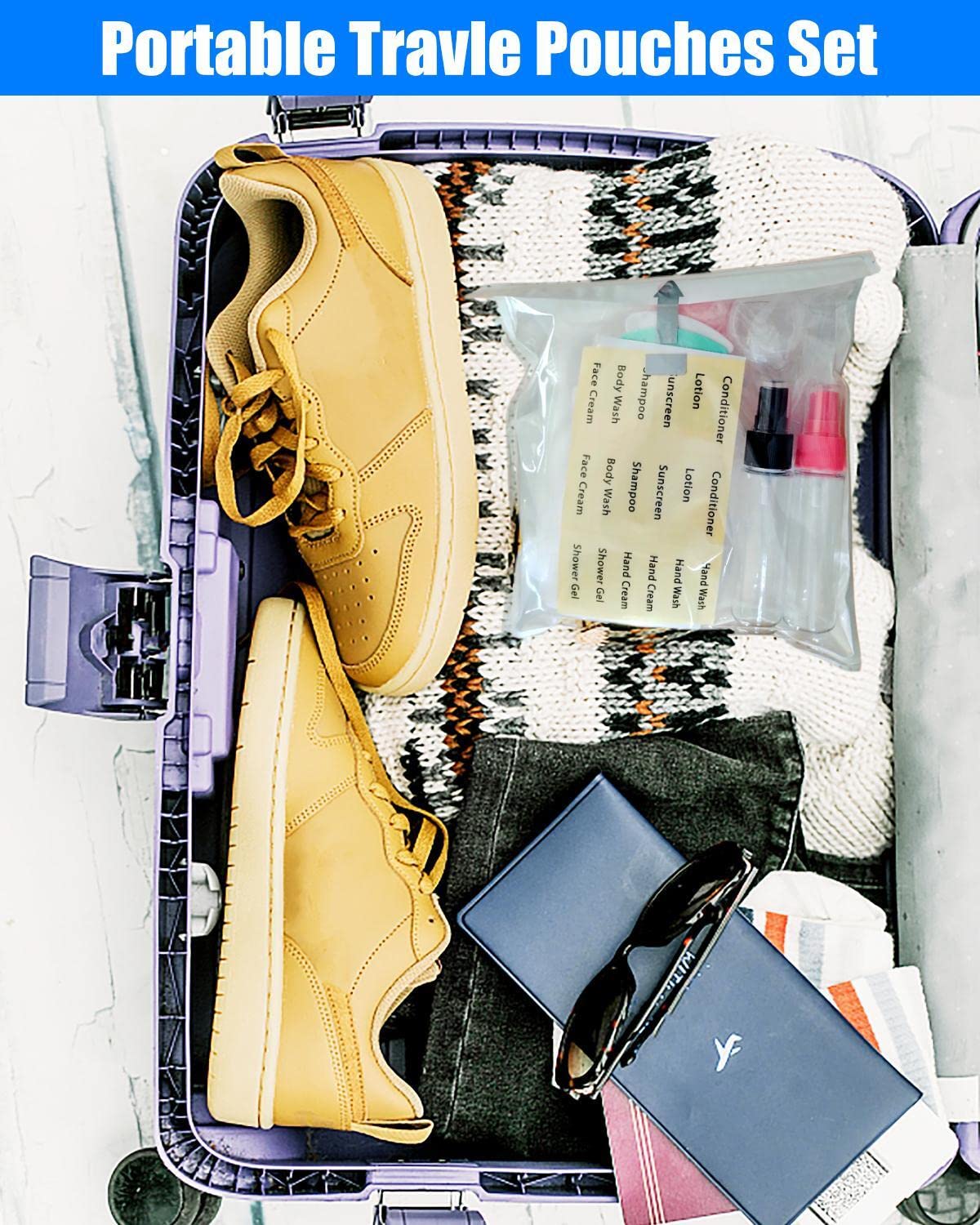 - 【MUST-HAVE Travel Sets】These travel containers for toiletries are compact and lightweight for easy packing into your purse, carry-on, backpack or suitcase. Our travel-size poucehs are reusable, leak-proof, durable and dishwasher safe.