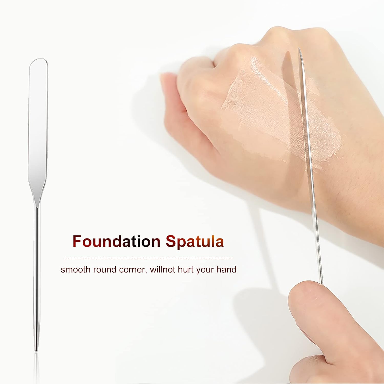 - Design: This makeup spatula is perfect for professional salons or home use. Lightweight and portable, easy to carry and use. Makeup Spatula is oblique Round Head: Ergonomic handle, easy and comfortable to hold. This makeup spatula is convenient for powder/glue/color matching.