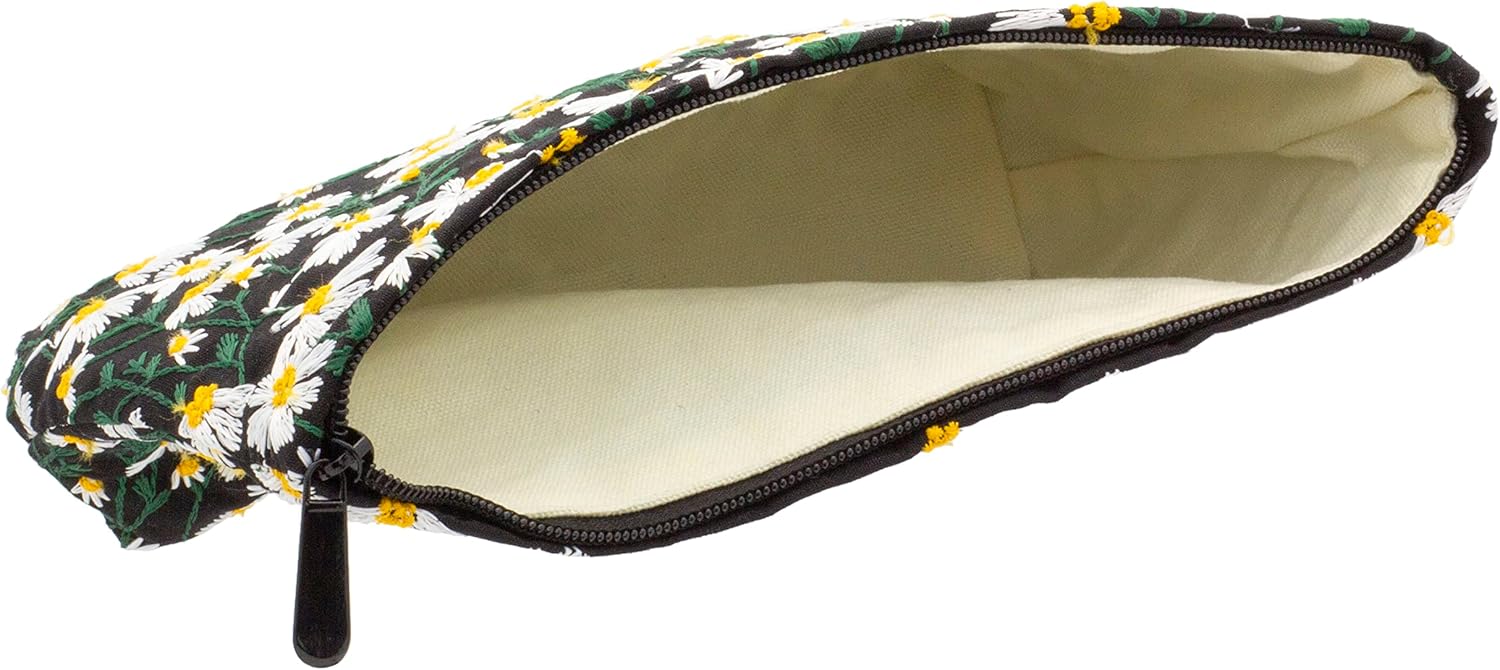 Makeup Bags for Purse Zipper Cosmetic Pouch Large Travel Canvas Make Up Organizer Tool Pouch for Women and Girls,Daisy Black