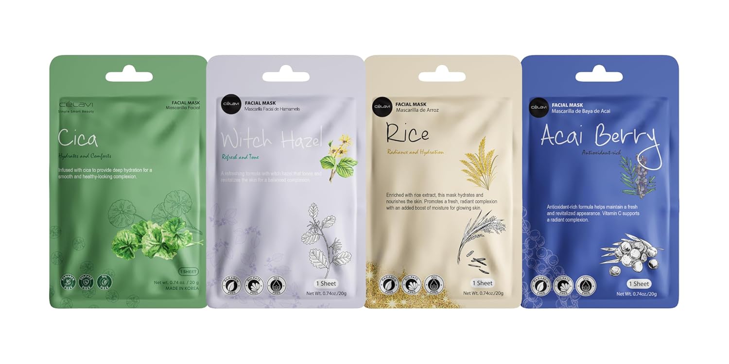 Celavi K-Beauty Skincare Essence Facial Face Mask Korea Skin Care Moisturizing C Set 12 Pack