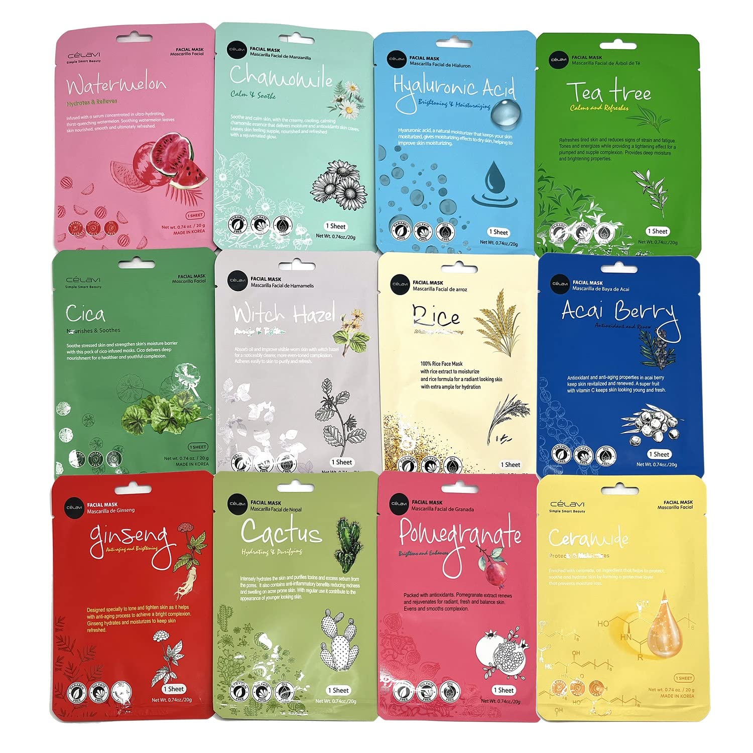 Celavi K-Beauty Skincare Essence Facial Face Mask Korea Skin Care Moisturizing C Set 48 Pack