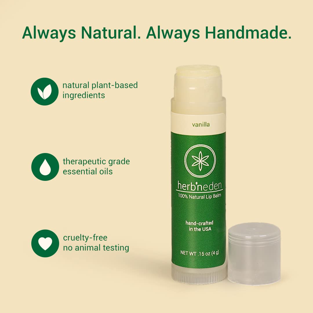 Herb’N Eden Vanilla Lip Balm Pack of 3 | Moisturizing and Soothing for Dry, Chapped Lips | 100% Natural Ingredients | Essential Oils