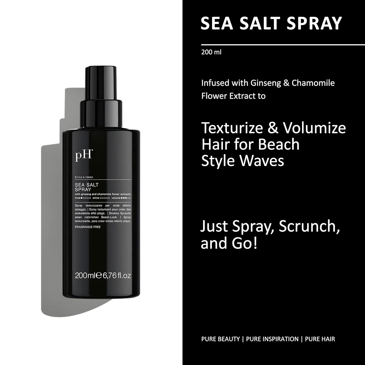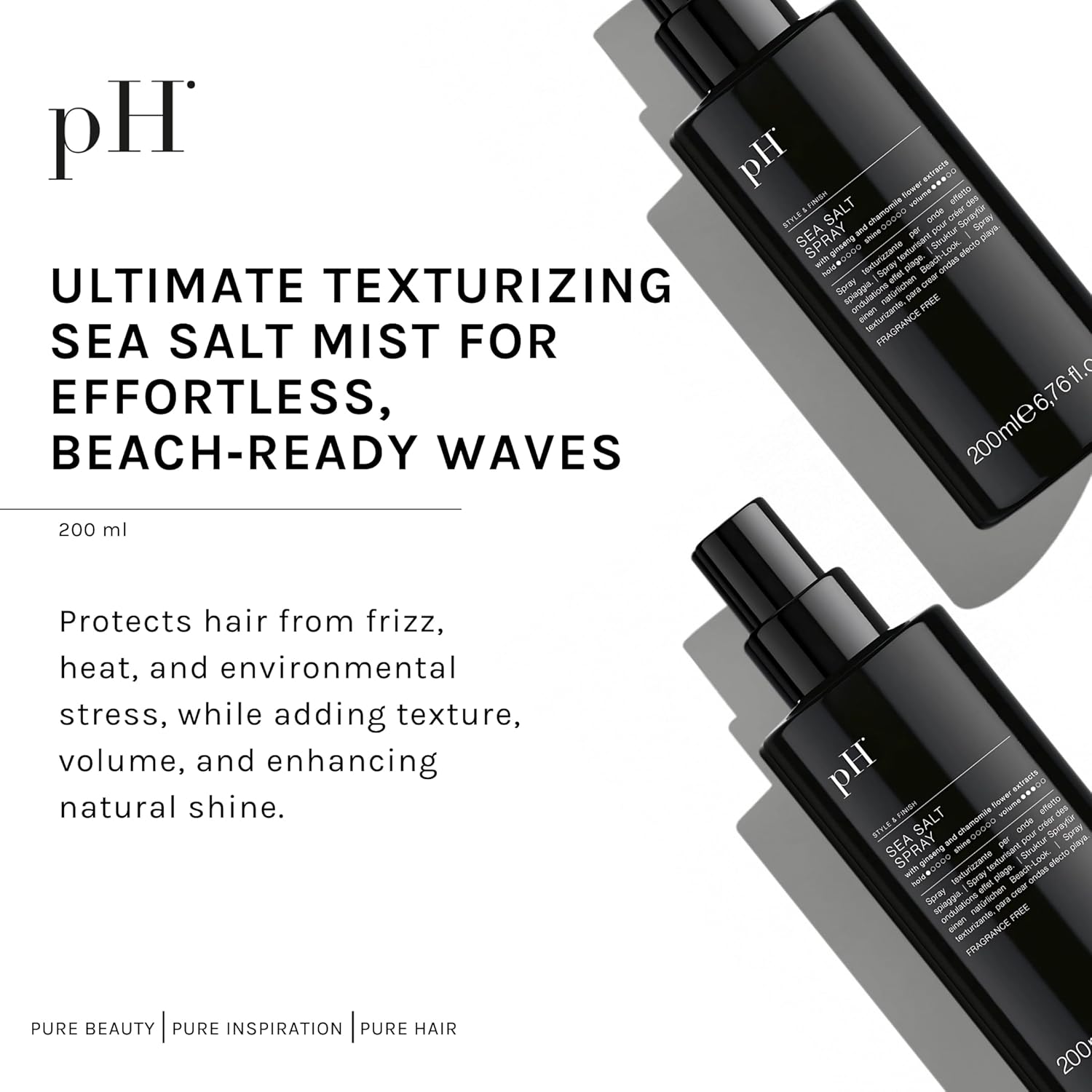 pH PURE HAIR Sea Salt Spray for Beach Waves - Volumizing Hair Spray for All Hair Types - Lightweight Unscented Formula for Textured Wavy Hair - Perfect for Curly, Wavy & Straight Hair - 6.76 Oz