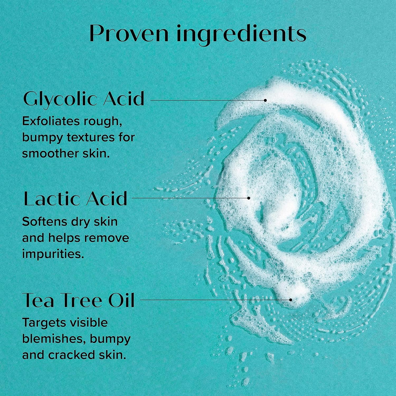 - SMOOTHING CLEANSE: Our glycolic acid body wash exfoliates and resurfaces rough and bumpy texture to reveal softer, smoother skin. The Alpha Hydroxy Acids within this exfoliating body wash prepares your skin for treatment body creams/lotions to effectively be applied by helping to remove the dry, dull skin that builds up on the surface of our skin. Dry skin can act like a shield that prevents active ingredients from penetrating.