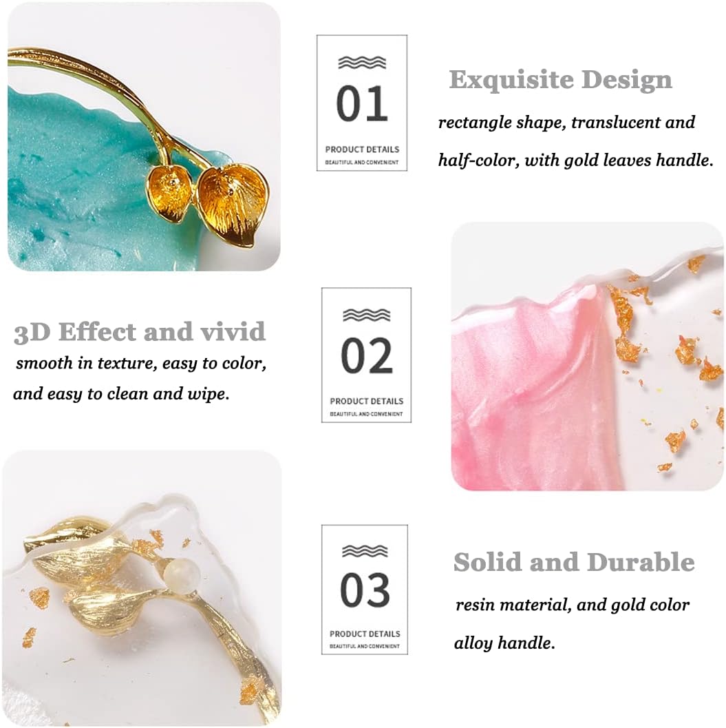 - Exquisite Design: Perfect resin manicure palette that mixes nail color, which helps maintain pigment. Rectangle shape, translucent and half-color, gold leaves handle design, beautiful color and comfortable texture, superior and exquisite.
