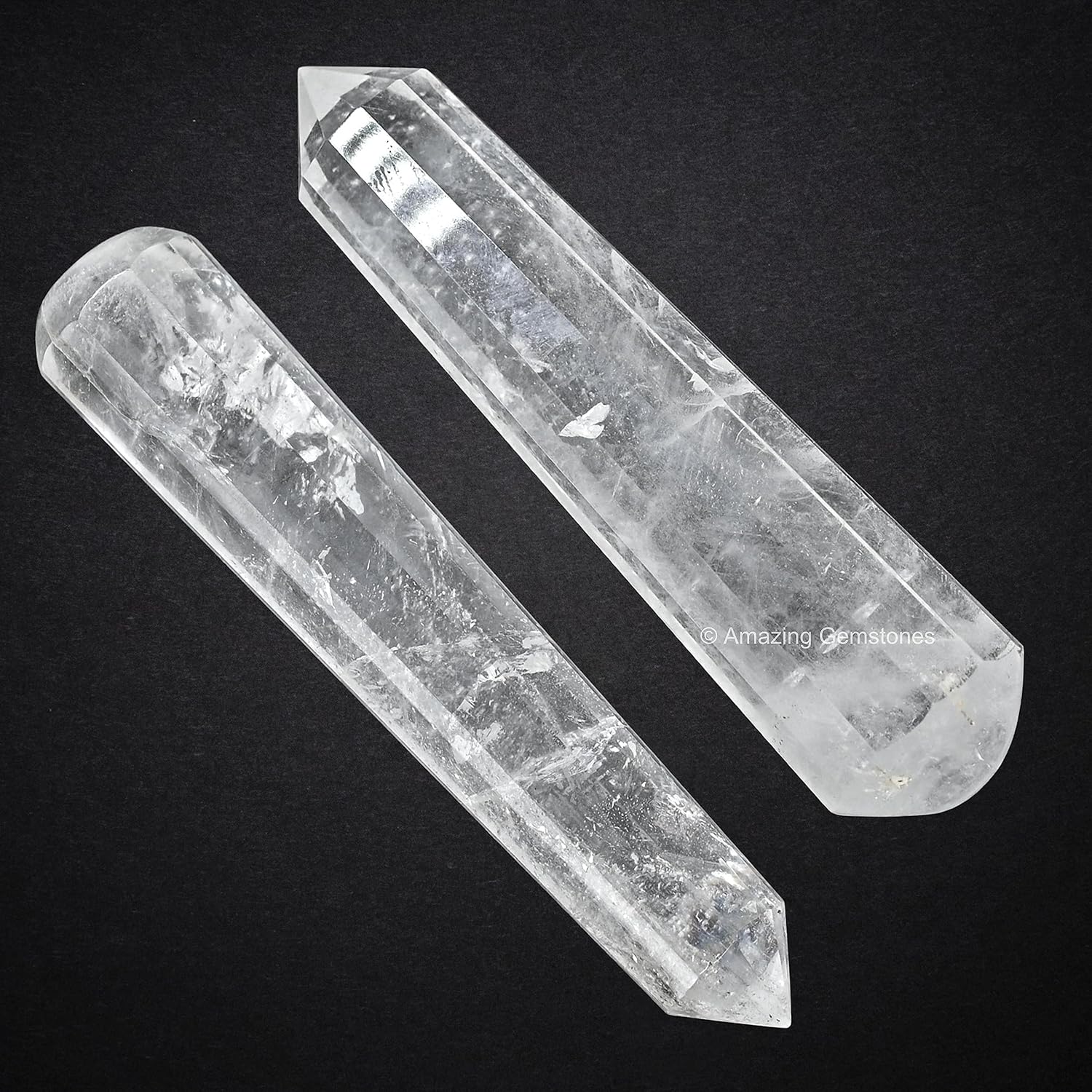 Amazing Gemstone Clear Quartz Crystal Wand Massage Stick - Pelvic Wand Gua Sha for Adults - Crystals and Healing Stones Massage Wands for Adults Gifts (Pointed)