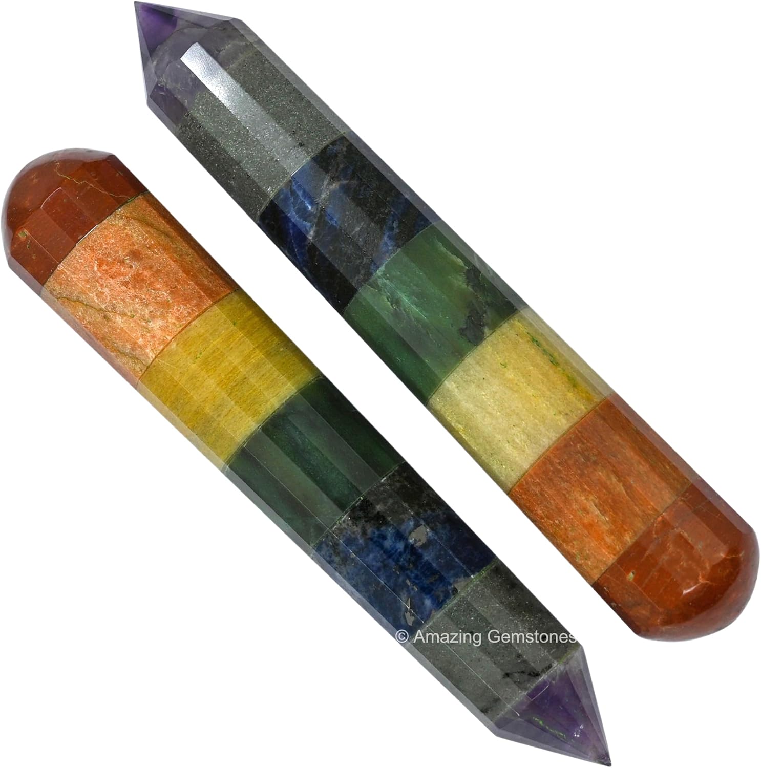 Amazing Gemstone Large Chakra Crystal Wand Massage Stick - Pelvic Wand Gua Sha for Adults - Crystals and Healing Stones Massage Wands for Adults Gifts (Pointed)