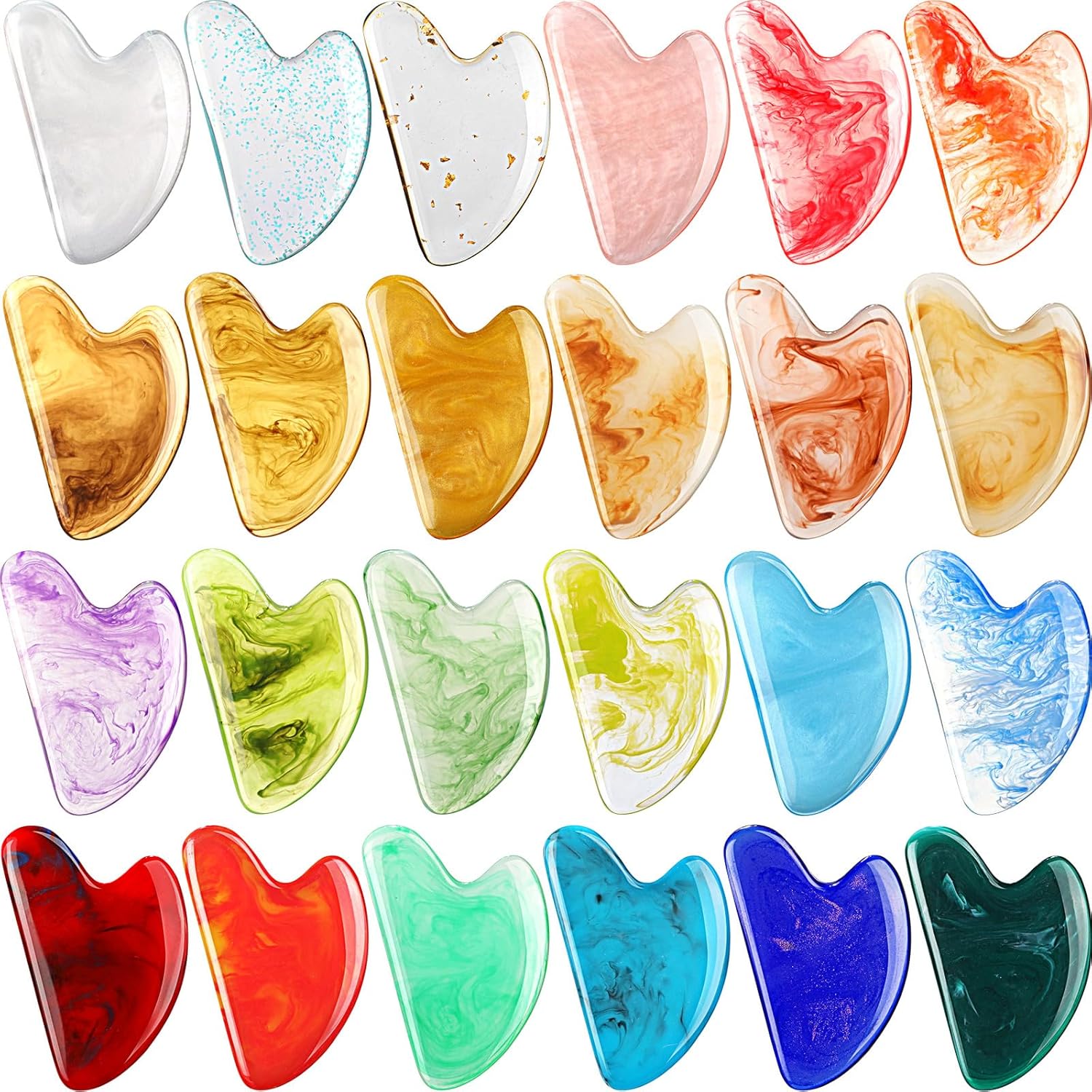 - Value 24 Colors: our value combination contains 24 colors of heart shaped gua sha facial tools, including jade pattern series, pearl series, gold foil series and so on different color combinations, the number is enough to meet your needs, different colors are easy to distinguish; Plus the gift box is a great gift set that can be given to your mom, sister or friend