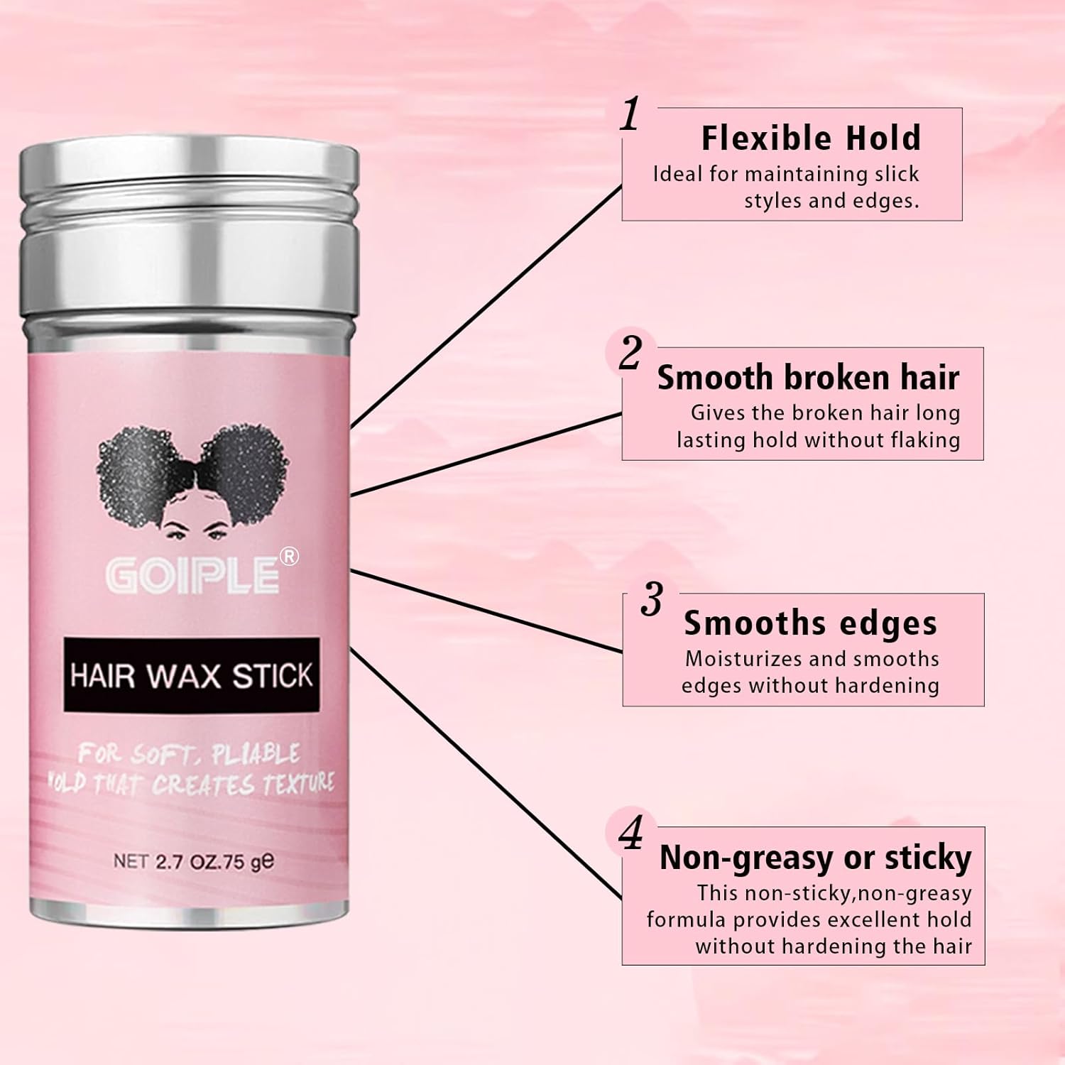 - 【Soft and Shiny Style】This wax stick can smooths hair and improves shine. Medium hold, flexible, 24 hours long-lasting and not greasy nor flaking. This wax stick can be used with our edge control.