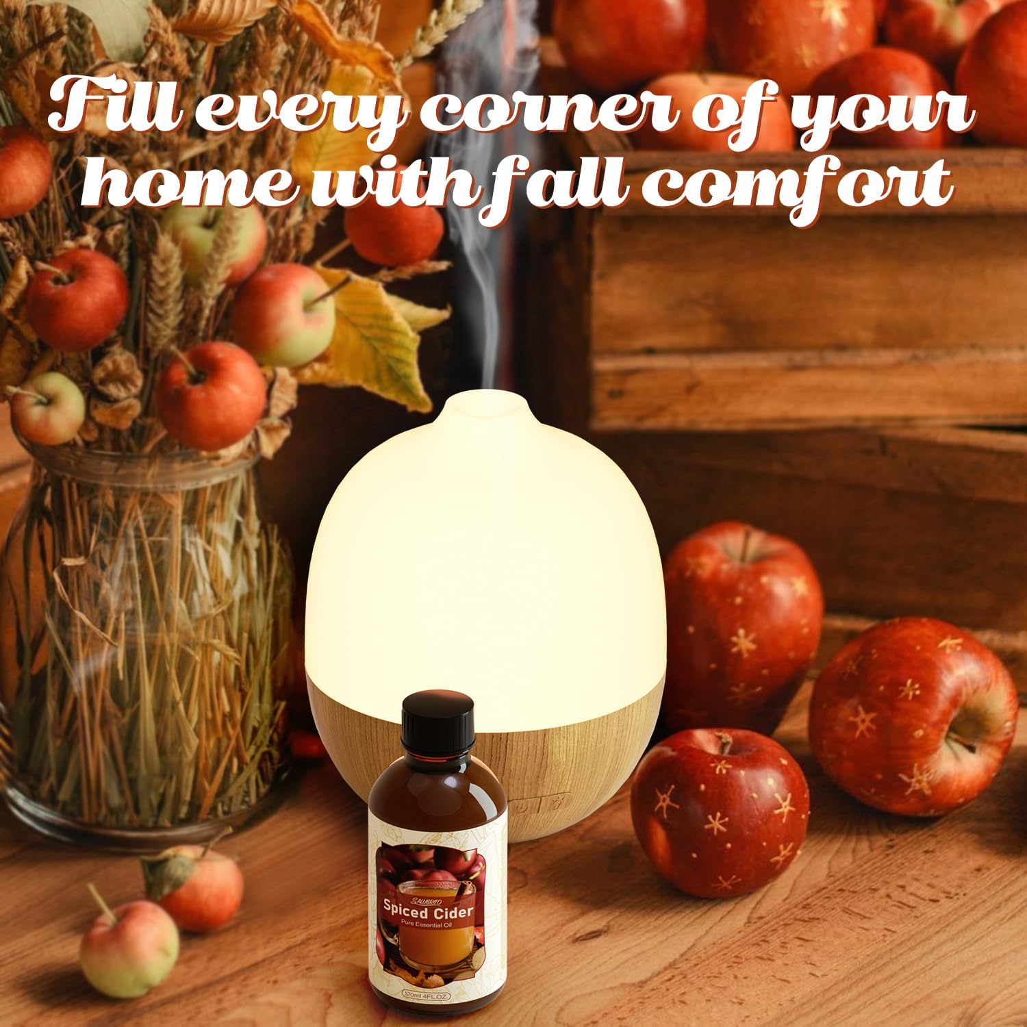 - Highly Concentrated Formula: SALUBRITO spiced cider essential oil is never diluted, ensuring a powerful and intense scents. 4fl.oz (120ml) of the spiced cider oil will last a long time. Warm fall diffuser oils can give you a taste of fall at home. This is a great choice if you are looking for a strong scent.