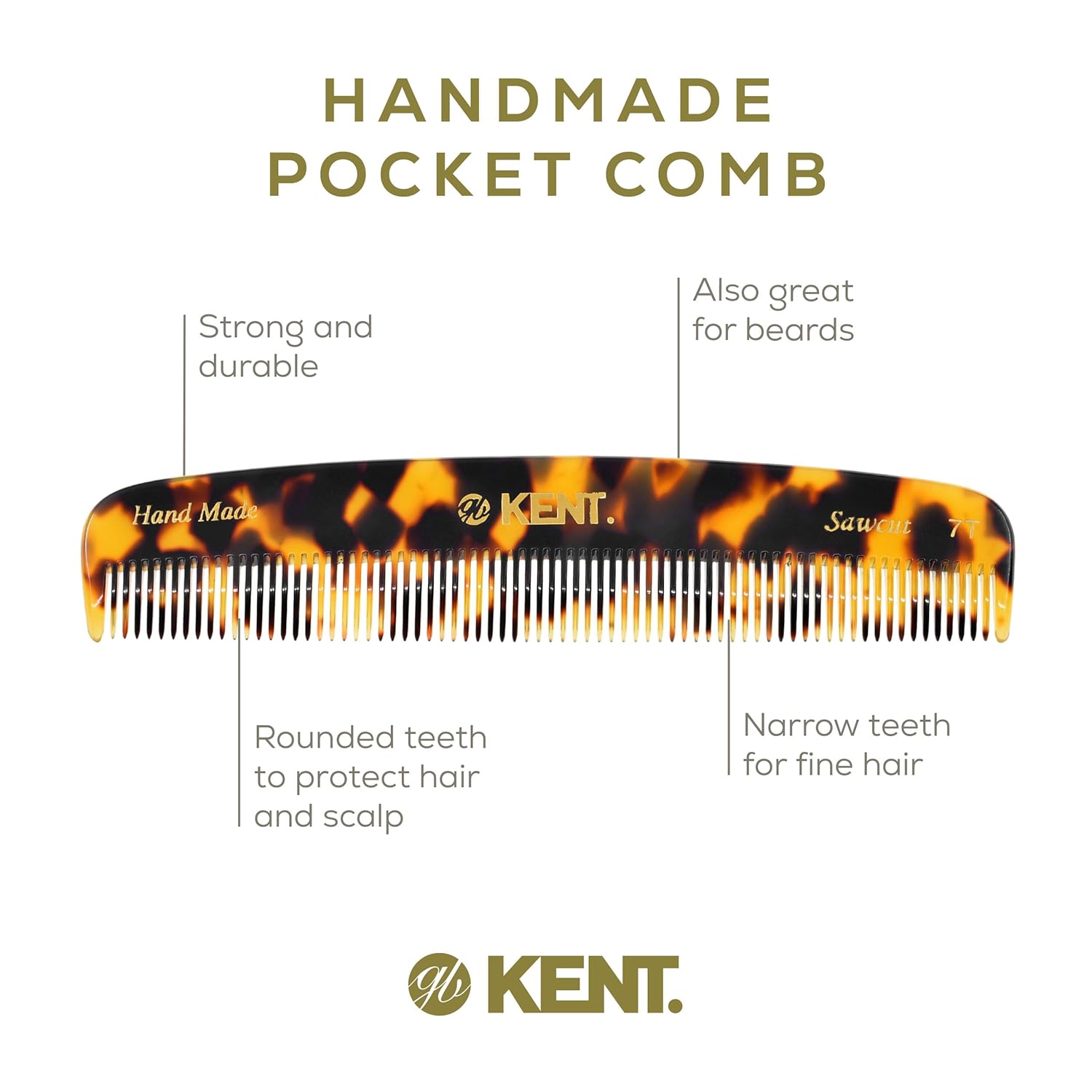 - GENTLE GLIDING COMB: The hand sawn combs are the nature of Kent’s Success. Cellulose acetate is a tactile, yet flexible and strong matrial. They glide effortlessly through hair without scratching or damaging the hair or scalp. Kent Combs have rounded teeth which ensure smooth and comfortable action.