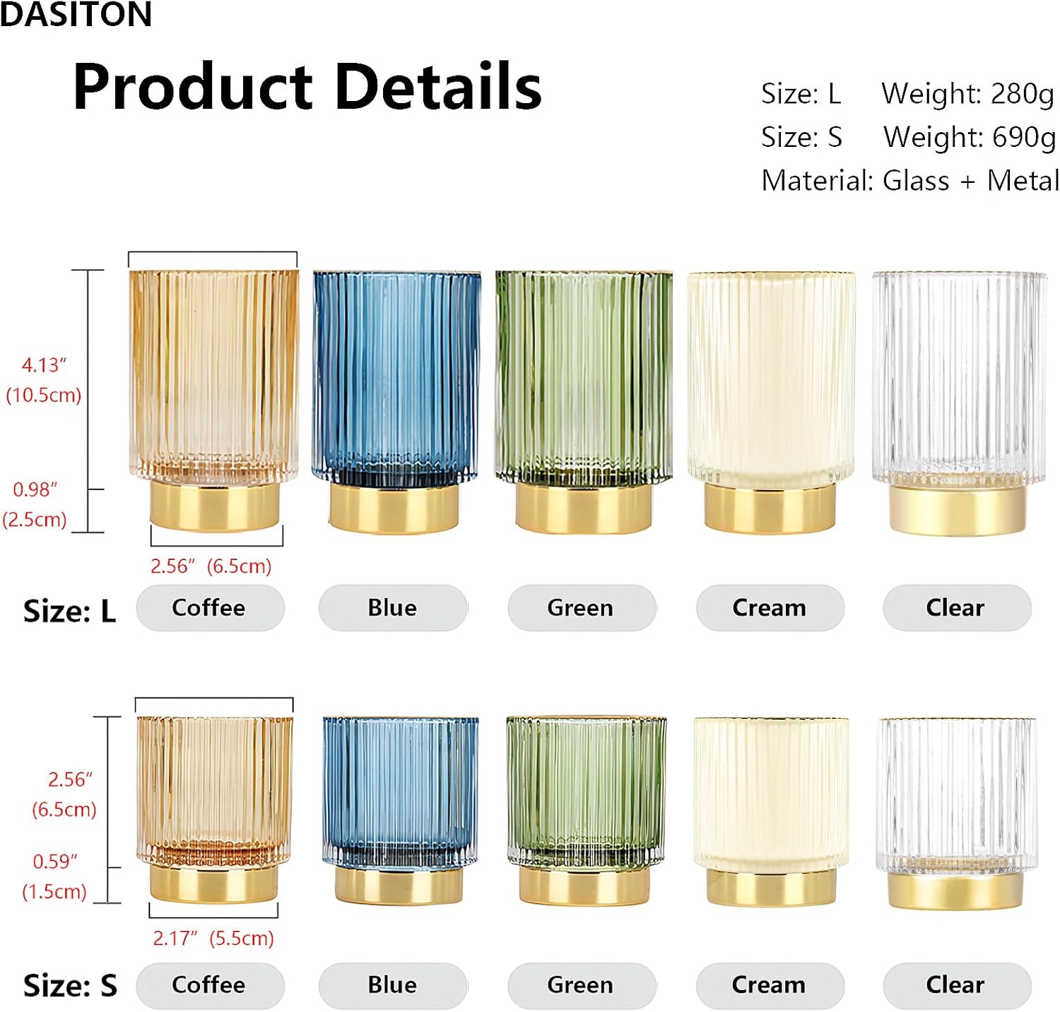 DASITON Makeup Brush holder Organizer,Crystal Cosmetic Makeup Brush Glass Brushes Storage Holder, Vintage Make Up Brush Cup Pen Pencil Holder striped vase(Clear L)