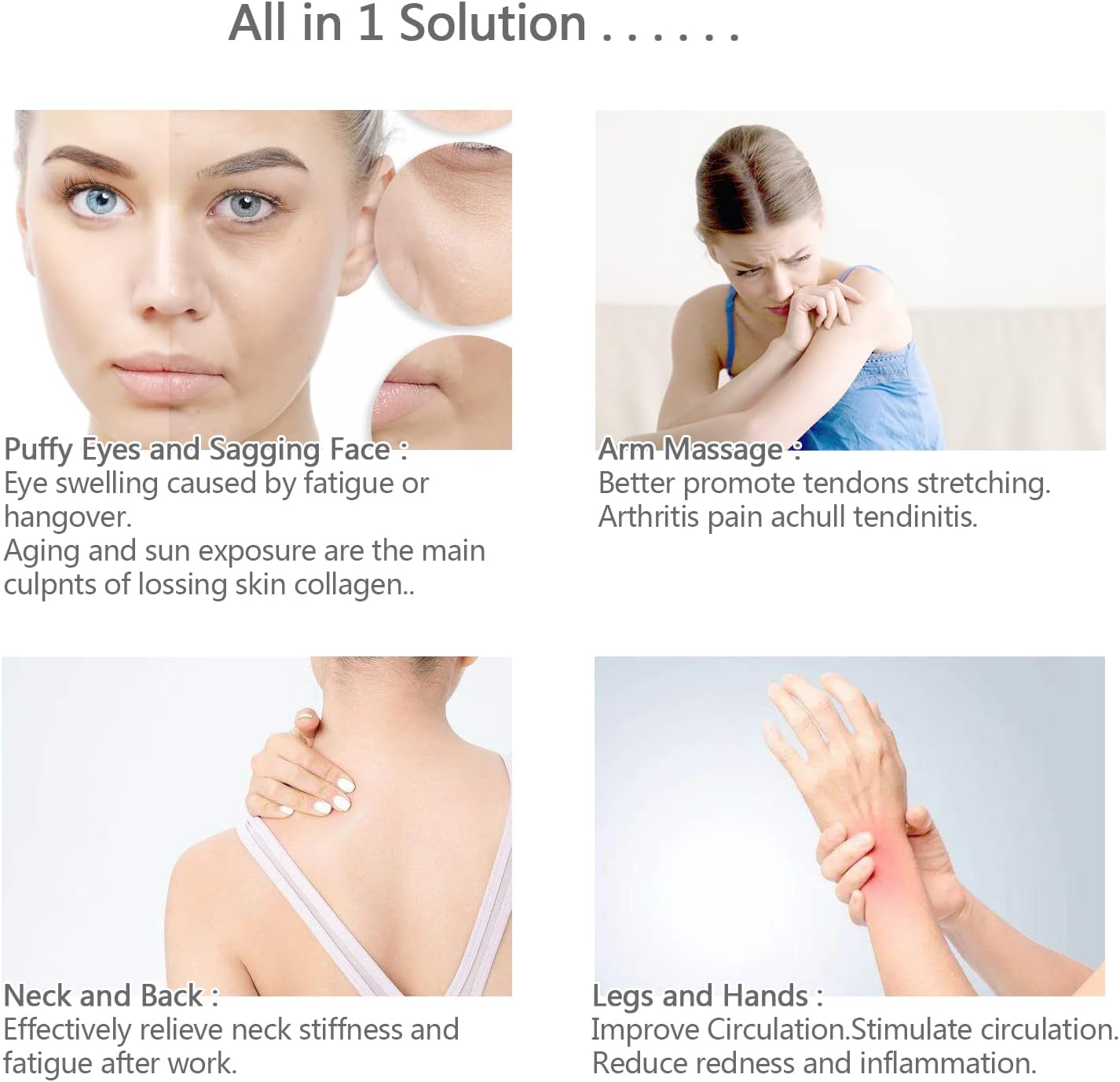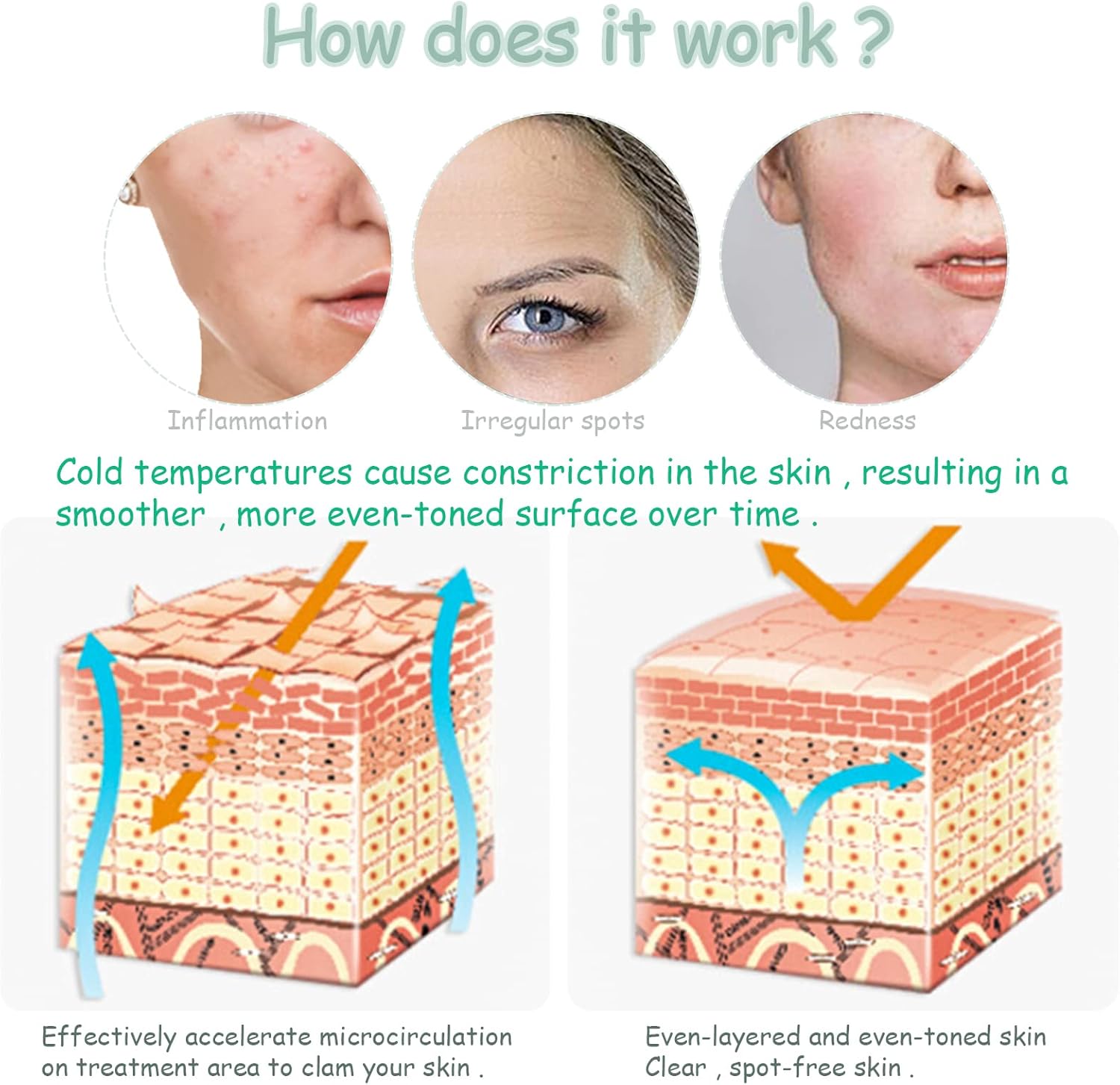 - Product Functions:Tighten your Pores and Calm your skin redness and inflammation - Effectively accelerate microcirculation on treatment area to clam your skin, reduce redness, fight puffy, fatigue, dry eyes, dark circles, early fine lines.Helps firm and tighten skin for radiance. Say Goodbye to fatigue - Massage on your eye and temple to relax and relieve fatigue. Detox massage could help to release muscle tensions to prevent early fine lines.