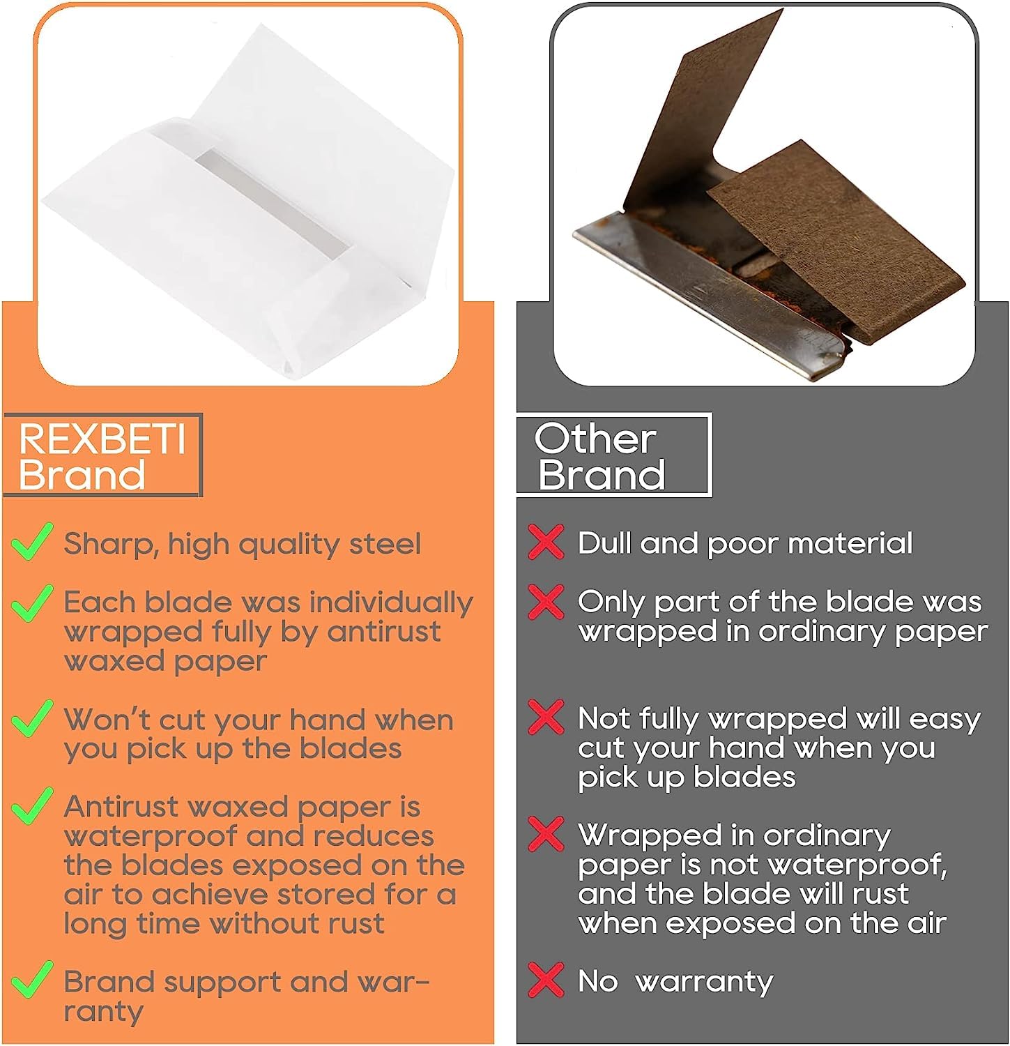 REXBETI 800PCS Single Edge Razor Blades, Industrial Scraper Razor Blades, Replacement Box Cutter Blades, Suitable for Removing Labels, Decals, Stickers