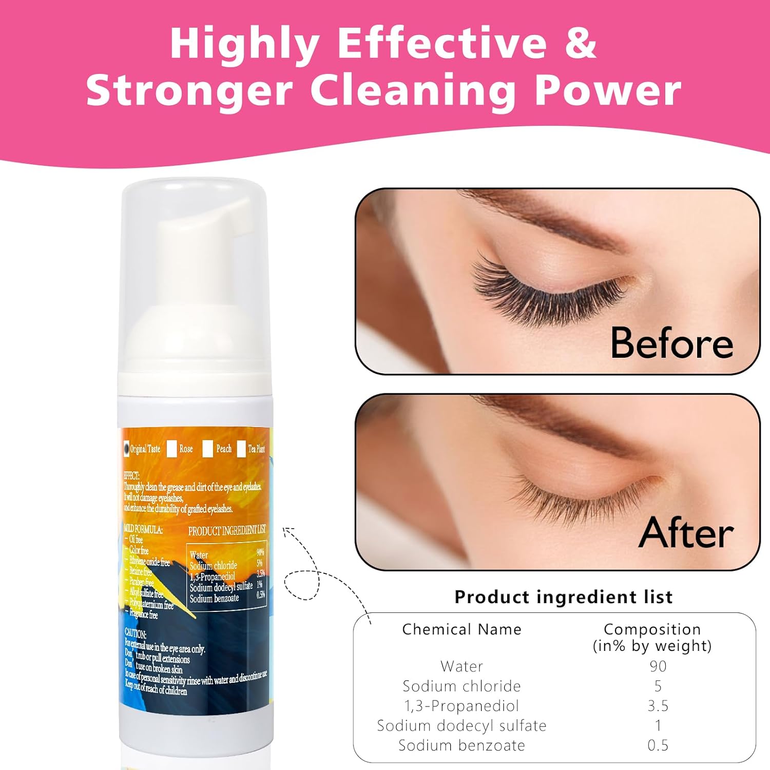 - Product Benefits : Quickly and effectively cleans eyelashes, safe for grafted eyelashes, and removes dirt and makeup residue for fresher, longer-lasting lashes Quickly and effectively cleans eyelashes, safe for grafted eyelashes, and removes dirt and makeup residue for fresher, longer-lasting lashes