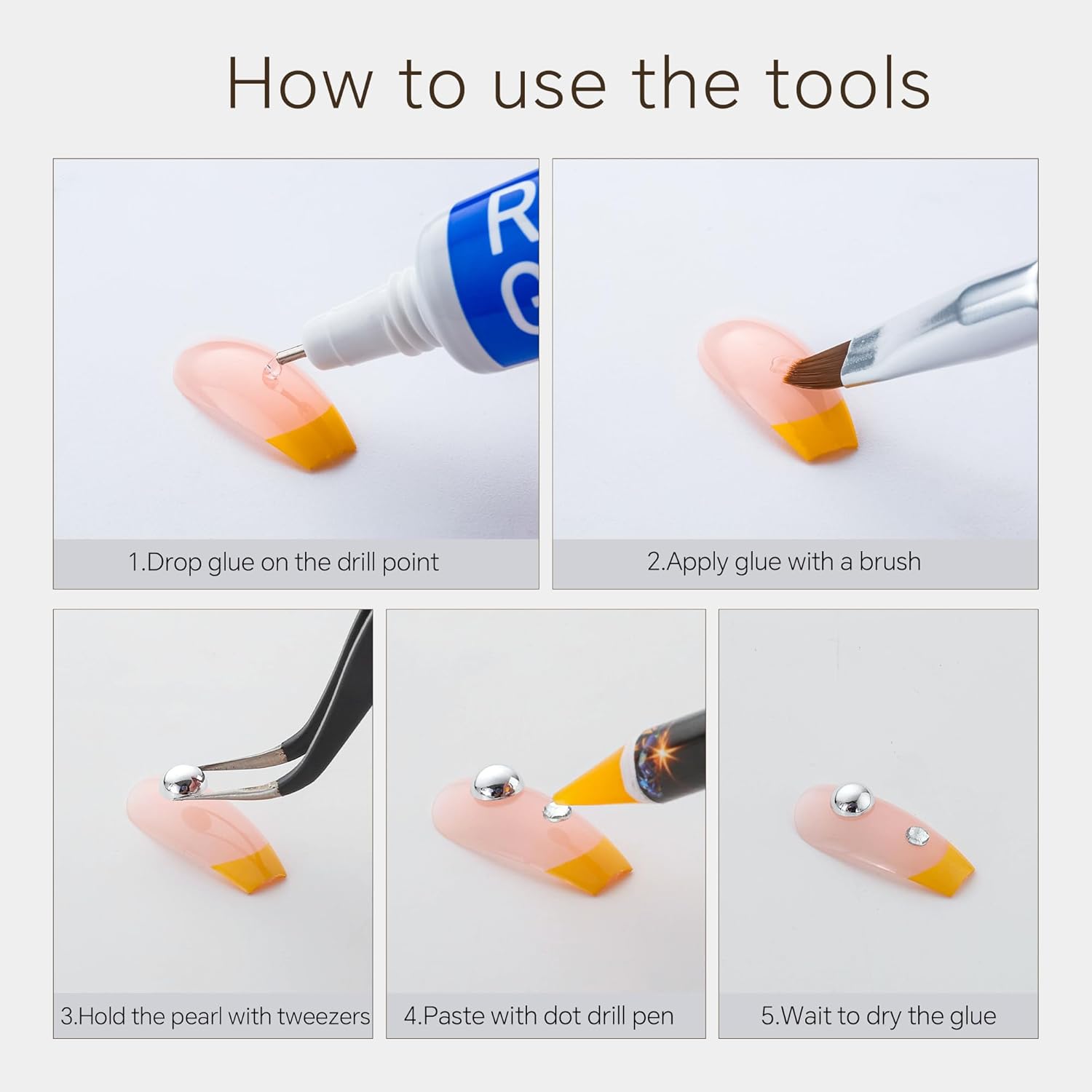 - Useful tools - These pearls and rhinestones have a flat back, which is excellent for easy placement.and you can pick up any large or small pearls and rhinestones with the crayons we bring along. And use the brush to smooth out the Gel, these tools will work very well