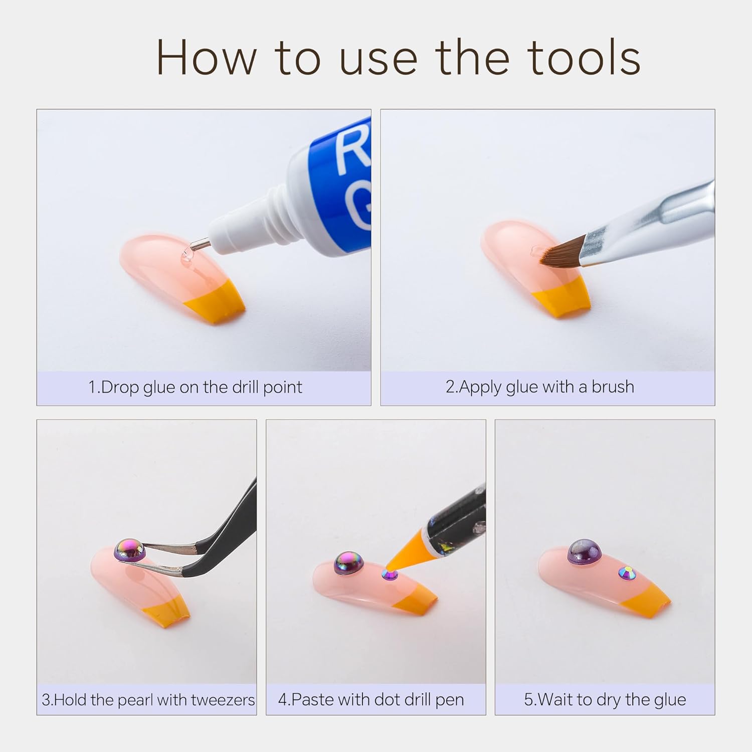 - Useful tools - These pearls and rhinestones have a flat back, which is excellent for easy placement.and you can pick up any large or small pearls and rhinestones with the crayons we bring along. And use the brush to smooth out the Gel, these tools will work very well