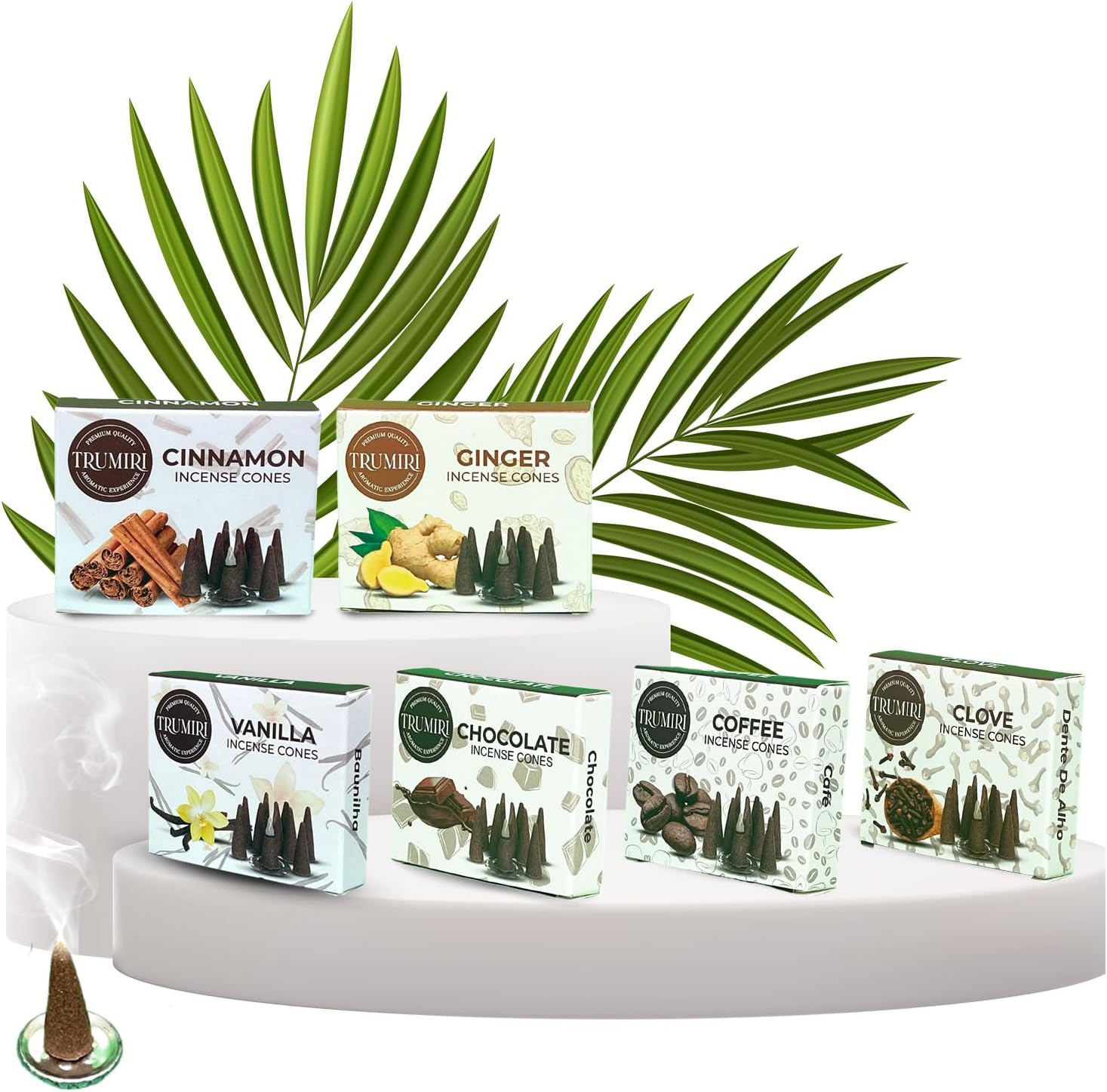 TRUMIRI Gourmet Incense Cones - Variety Pack - Total 60 Cone Incense (6 Scents x 10 Conos) - Vanilla, Cinnamon, Coffee, Chocolate, Clove, Ginger - Cone Incense Scents - Insense Cones - Incent Cone