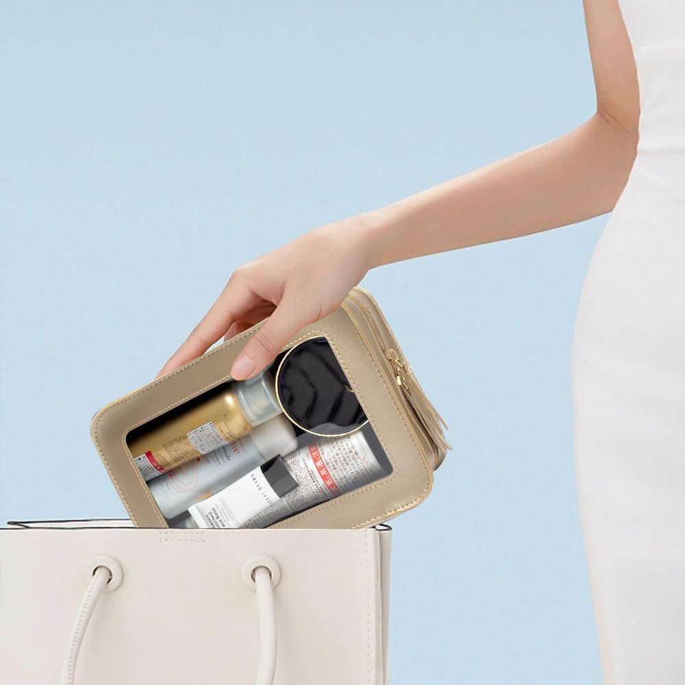 • Clear Design: Our clear toiletry bag is sleek and minimalistic look for your makeup accessories collection. And is designed with a clear PVC window,all items are clear at a glance, and you can quickly choose the cosmetics you need. Size:9.44“*6.1”*2.75“