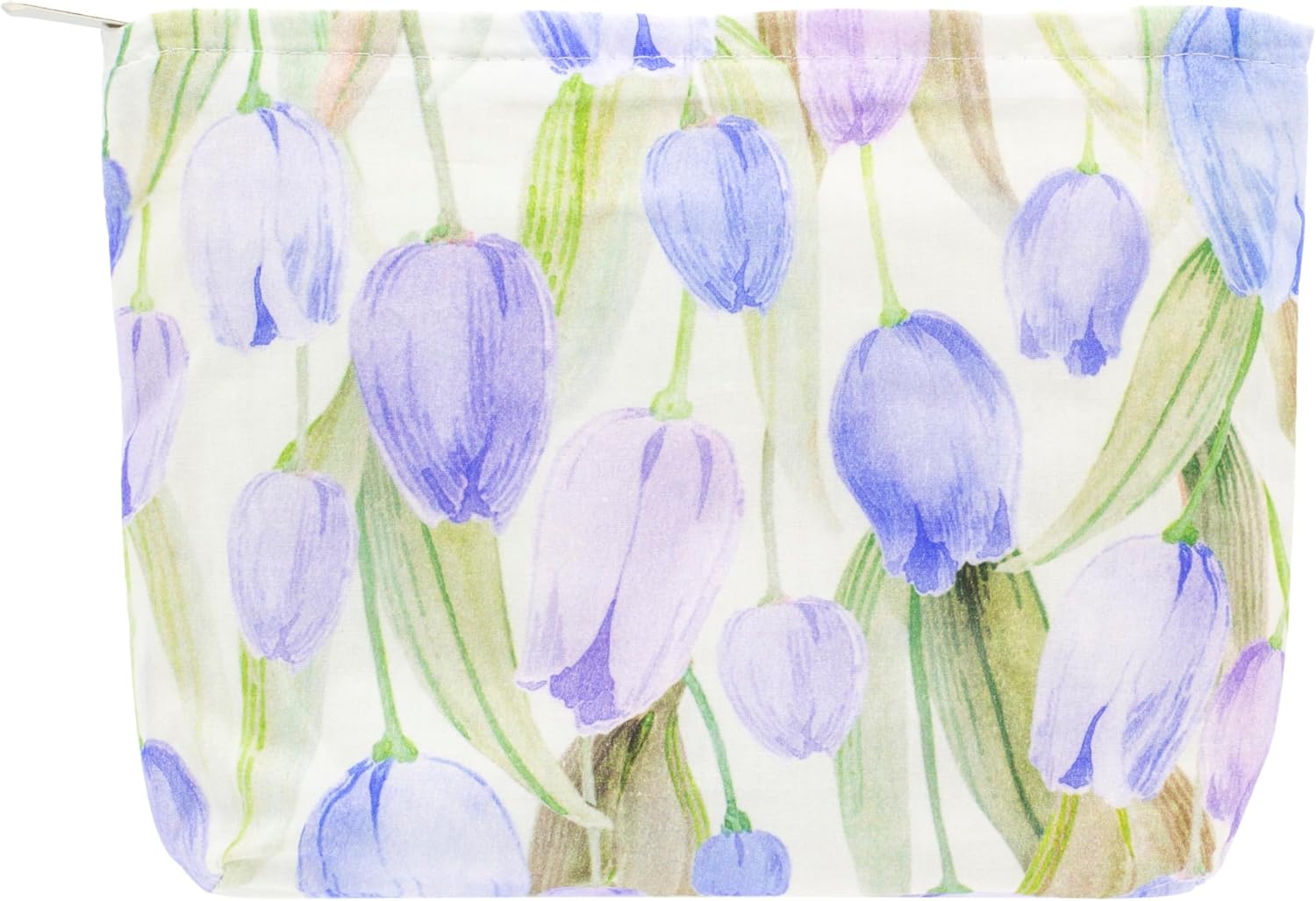 PAZIMIIK Floral Makeup Bag Large Cotton Zipper Pouch for Purse Travel Canvas Make Up Organizer for Women Cosmetic,Tulip Purple