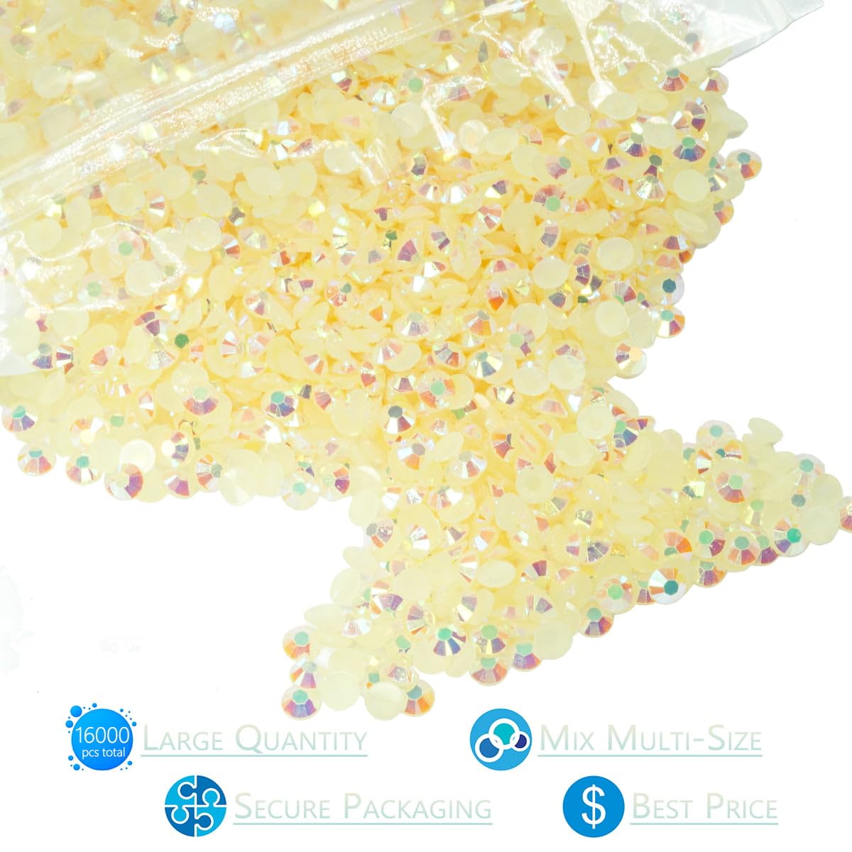- ❤【3 Big Packs Resin Jelly Rhinestones for Crafting】Total 3 Bags Light Champagne AB Jelly Rhinestones: 1 Bag 8000Pcs 3mm SS10, 1 Bag 5000Pcs 4mm SS16, 1 Bag 3000Pcs 5mm SS20, Flatback Champagne AB Resin Stones Gems Diamonds Bulk.