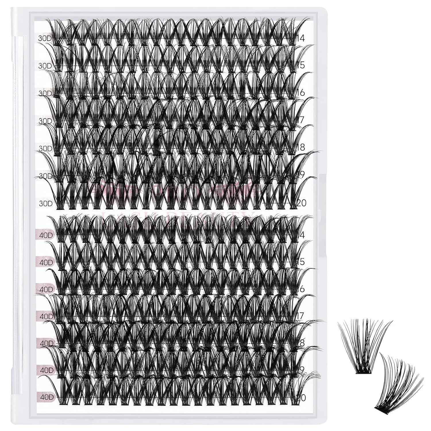 - Unique: The now very popular individual lashes are now available in PRO LashBeauty, and it is especially worth highlighting that PRO LashBeauty can provide 280 lashes in one tray! The blended lengths range from 9mm to 16mm, curls include C and D, and there are also have 10D, 20D, 30D, 40D, 10D+20D, 30D+40D. With a variety of styles for you to choose from. For the same price, you get more lashes and more uses.